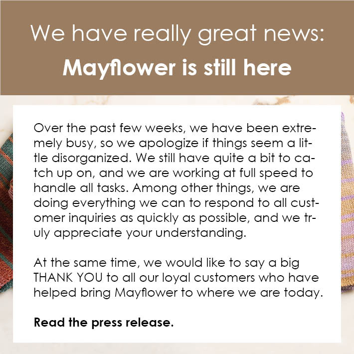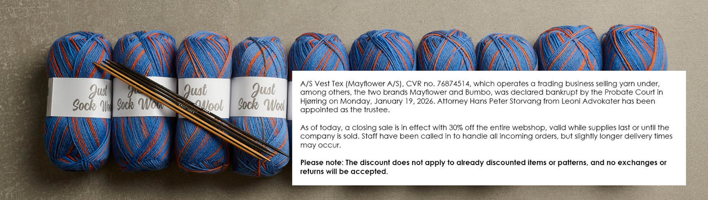 In Mayflower's assortment, there are yarn qualities for all types of clothing - from the warm hat to the woolen socks and the lovely knitted sweater. The large universe of patterns is steadily growing and consists of a good mix of timeless classics, current knitting trends, and delightful retro patterns.