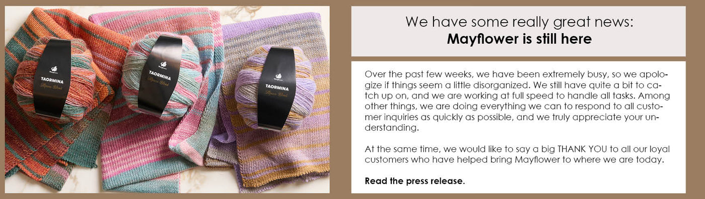 At Mayflower, we assemble ready-made yarn and pattern kits so that you can easily, with a single click, put your favorite patterns and corresponding yarn in your cart