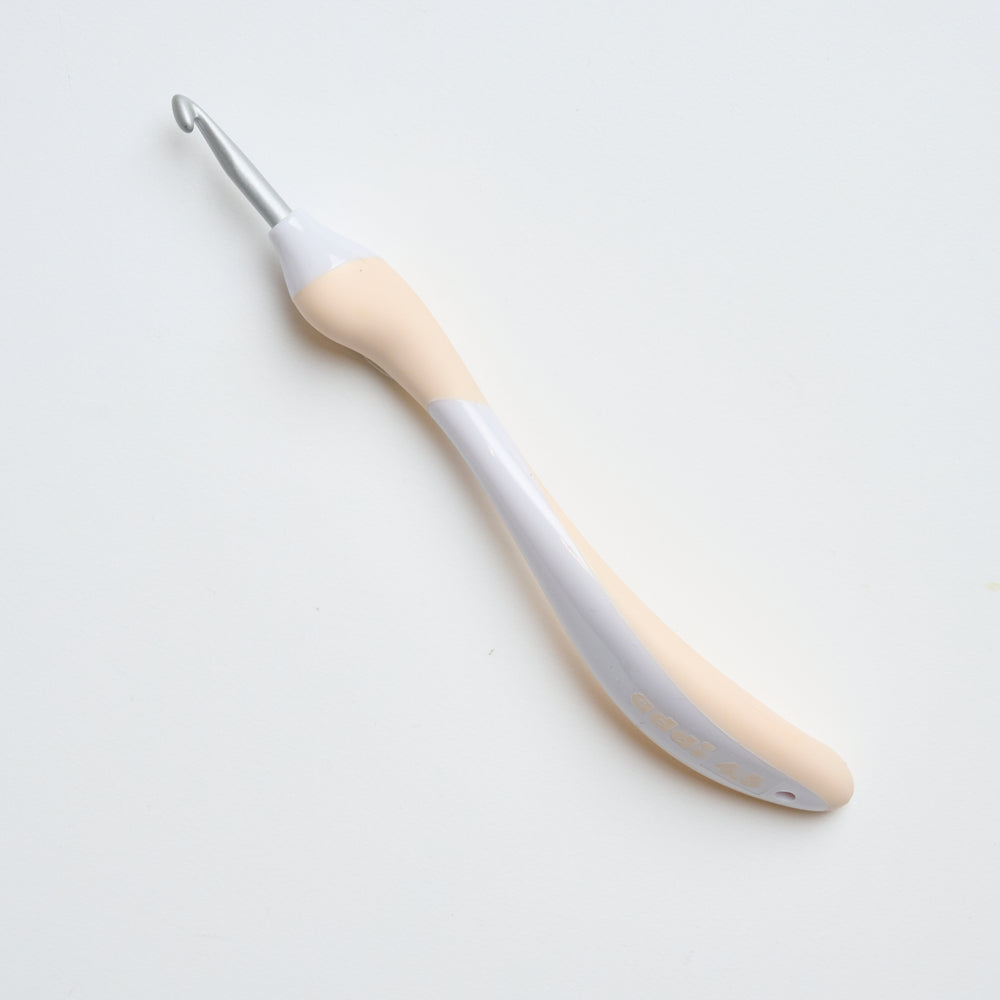 Addi Swing crochet hook is an ergonomic and comfortable tool designed to make crocheting easier and more pleasant. The crochet hook has a specially curved handle, made of soft, flexible material that provides a secure and relaxed grip, reducing fatigue in the hand, arm, and shoulder. The needle itself is made of smooth, durable aluminum, allowing the yarn to glide easily during work. Addi Swing comes in various sizes, making it possible to find the ideal crochet hook for both fine and thick yarn qualities. The crochet hooks are suitable for both beginners and experienced crocheters who want maximum comfort and precision. The handle is made of two different types of plastic - one that is colorful and soft - and one that is white and firm. This combination ensures great flexibility and an optimal grip when you crochet.