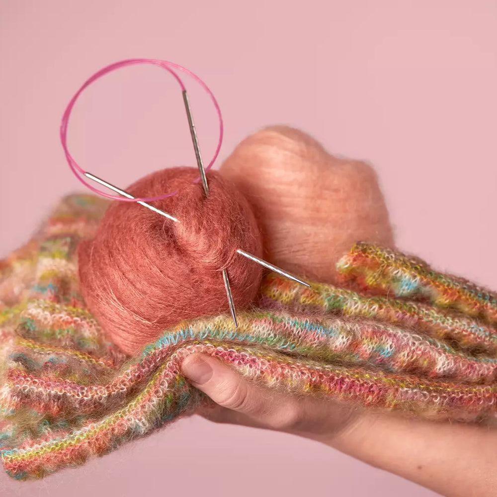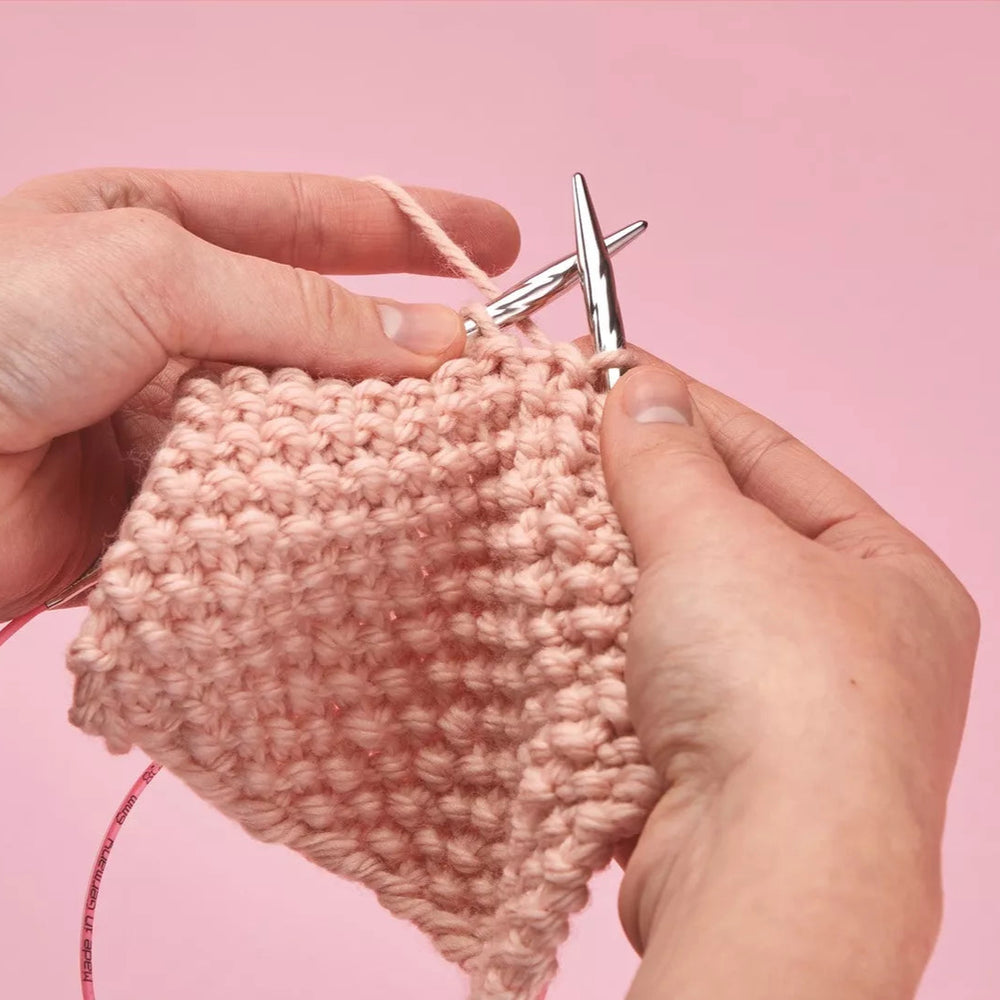 Circular needles of good, German quality from Addi, which has been producing accessories for knitting and crocheting since 1829. A brand that, with the Unicorn series, takes the knitting experience to new heights. With needles made of brass coated with white bronze with a spiral structure, you get lightweight needles that the yarn glides on effortlessly. The needle tips are rounded, allowing you to knit without twisting the yarn fibers along the way. The cable is pink and made of flexible plastic, with the needle size and length of the circular needle printed on it. The circular needles are available in many different sizes and two different lengths.