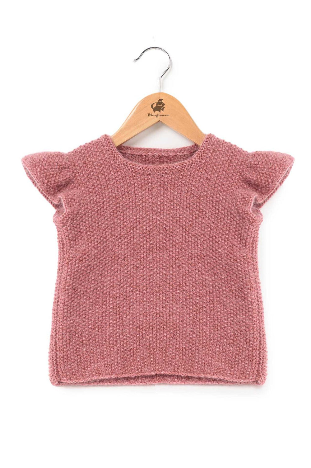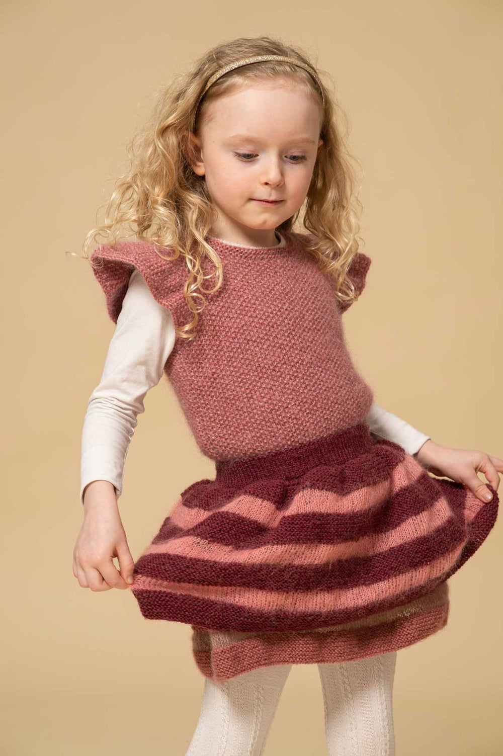 The cute ruffle sleeves give the vest plenty of personality, and at the same time, it has a simple texture pattern as it is knitted in seed stitch. These fine details are rounded off by the neckline, which, somewhat unusually, is knitted in garter stitch.