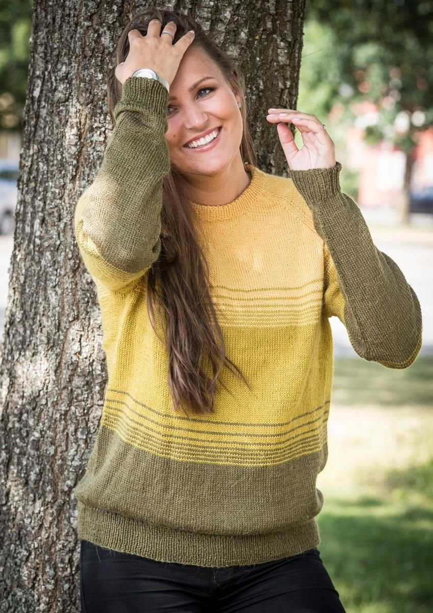 Smart blouse with stripe effect à la tone in tone knitted in the new delicious soft quality from Mayflower called Mayflower Alpaca Touch. Mayflower Alpaca Touch consists of 15% alpaca, 25% wool, and 60% nylon. Runs 185 m per 50 grams. A truly beautiful yarn for most projects. See the many beautiful colors here on the page. Mayflower Alpaca Touch is available in 4 designs at the current time. Download the beautiful designs and knit a truly lovely garment.