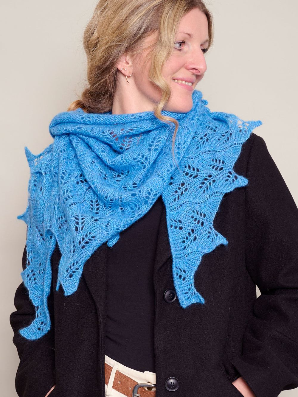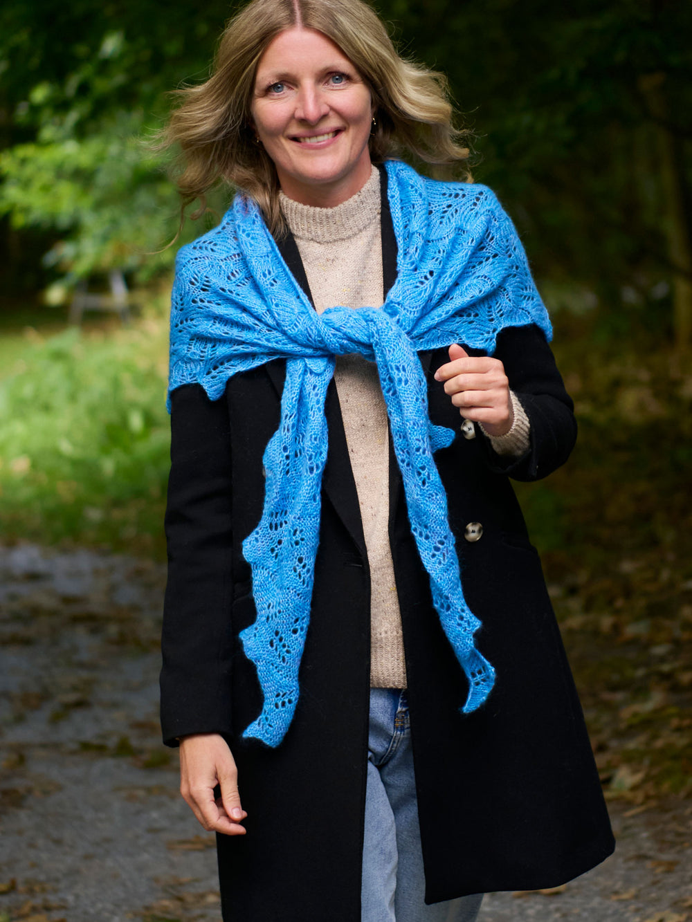 The knitted shawl initially looks very advanced due to its lace pattern. However, the shawl is surprisingly simple to knit, as the lace pattern is not nearly as complicated to make as it appears. You can therefore truly amaze both family and friends by knitting a shawl that looks like a masterpiece.