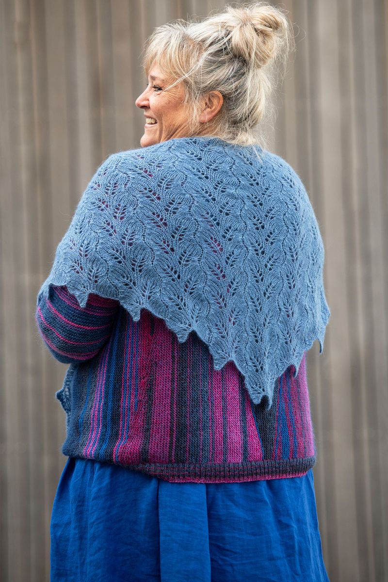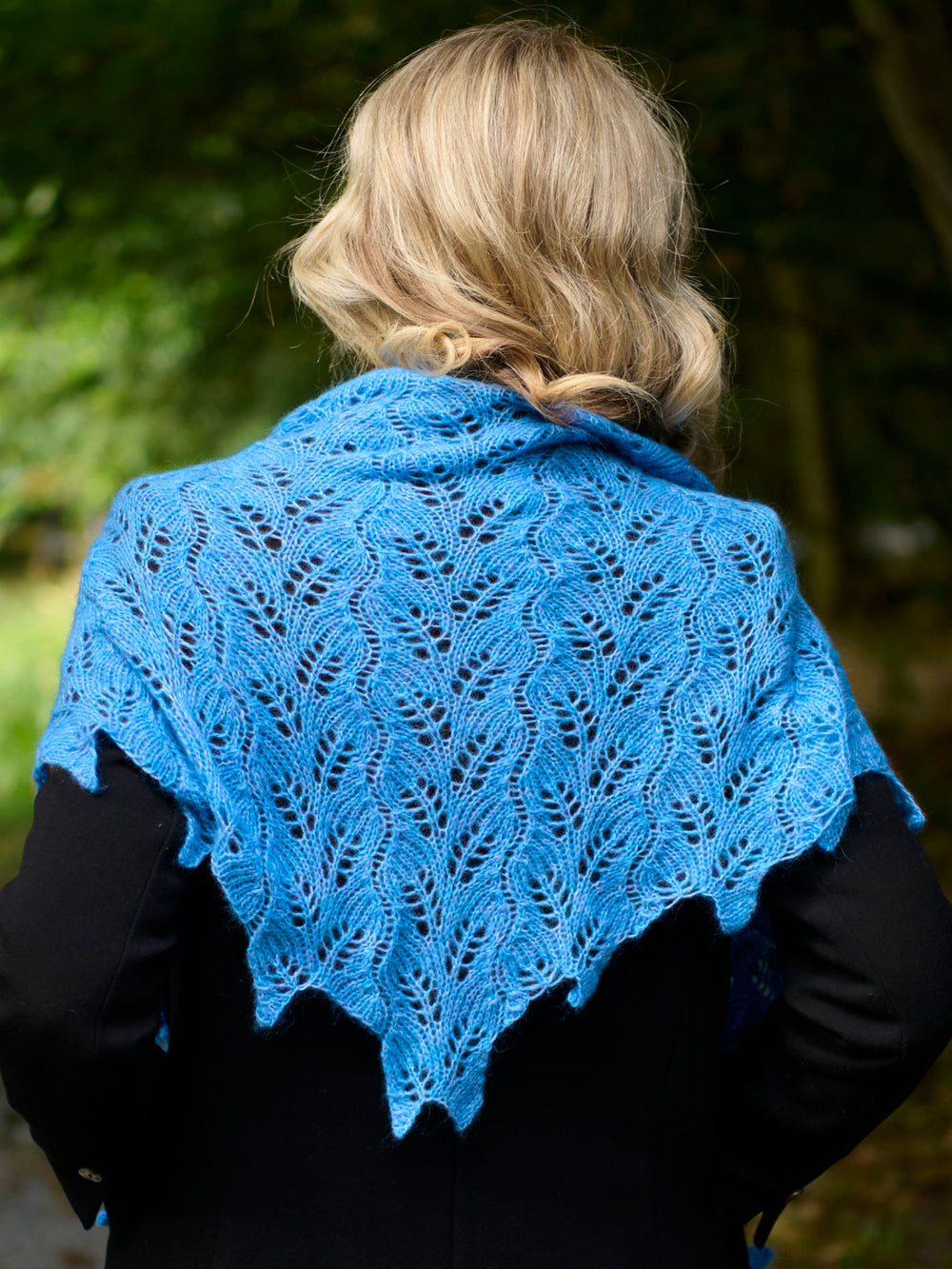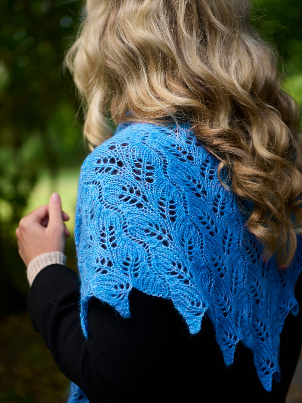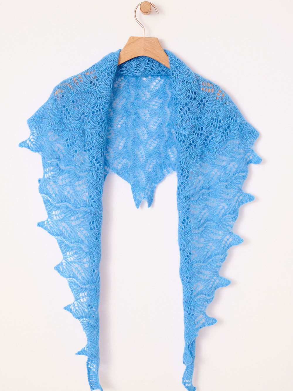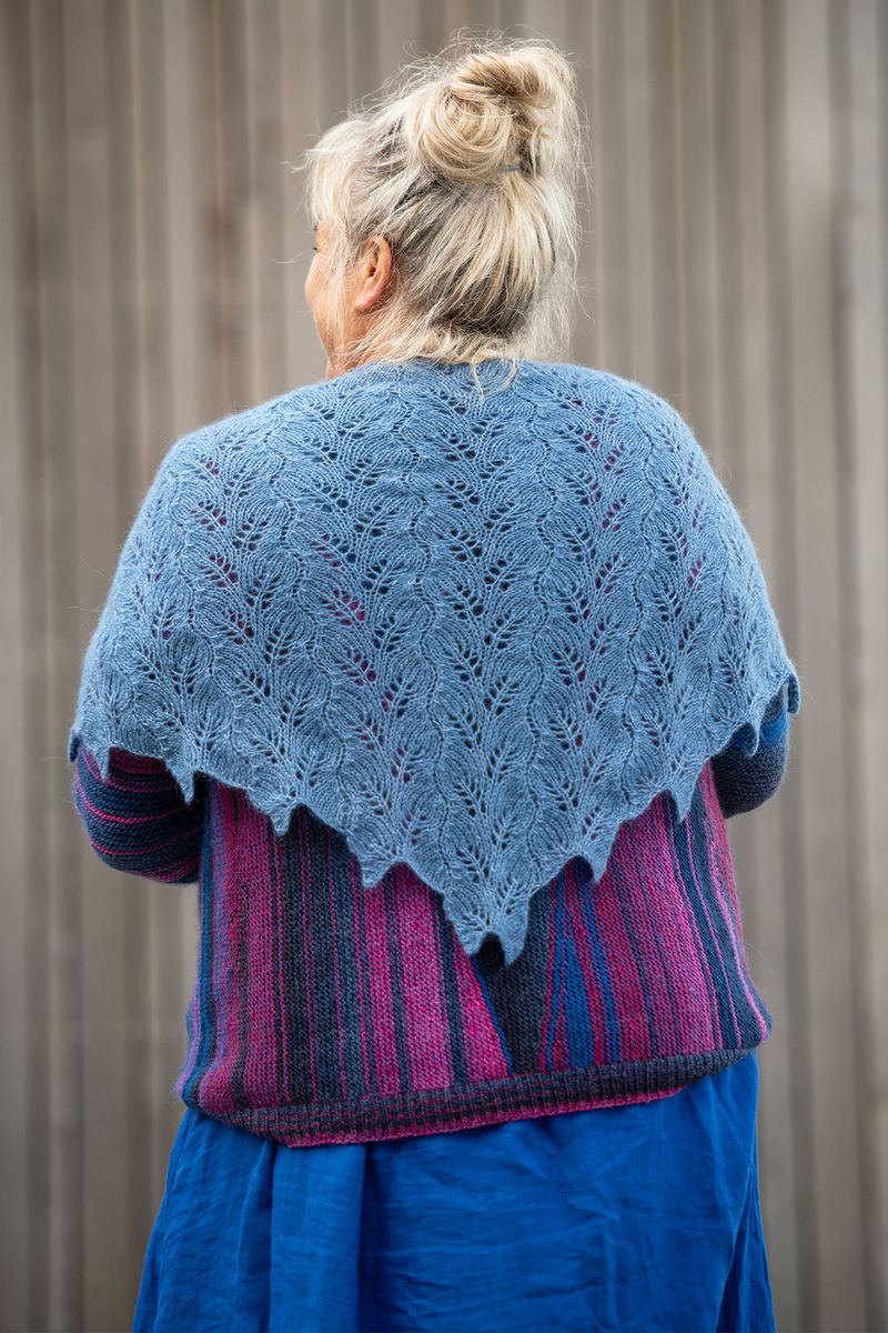 The Fern Shawl was originally knitted in Mayflower New Sky Light, and you can find the pattern right here.