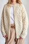Fuzzy and soft cardigan, knitted from the bottom up in a beautiful cable pattern.