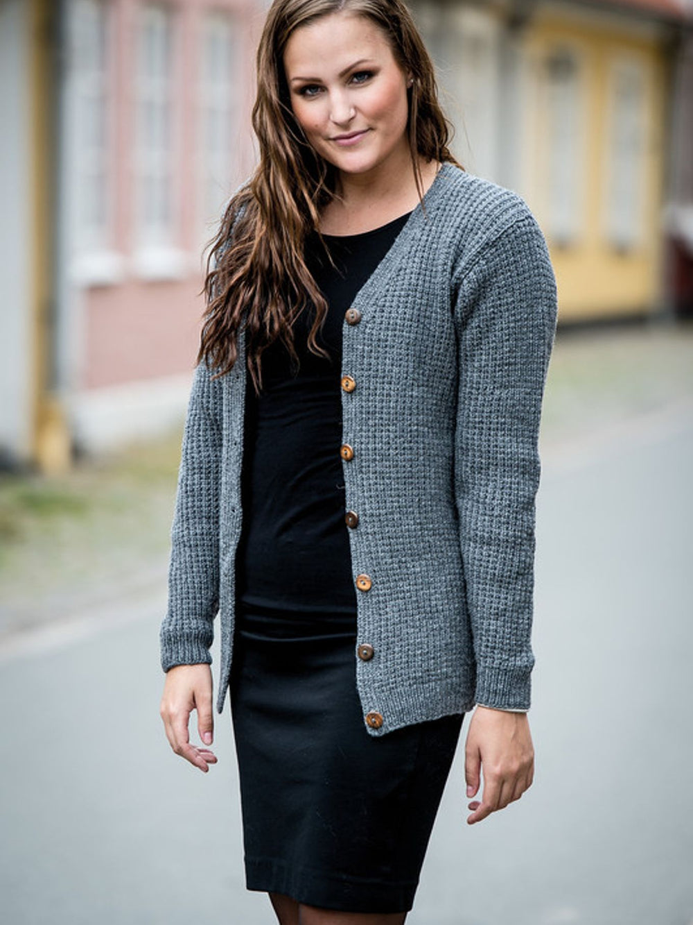 Smart cardigan with buttons, knitted in a simple pattern with great effect, which is very beginner-friendly.