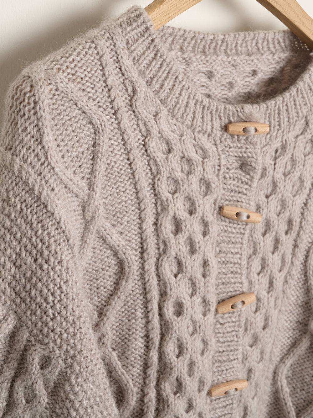 The Dagmar Jacket by PetiteKnit is a wonderfully cozy and fluffy cardigan, worked top-down in textured stitch patterns. The cardigan is finished with button closures.
