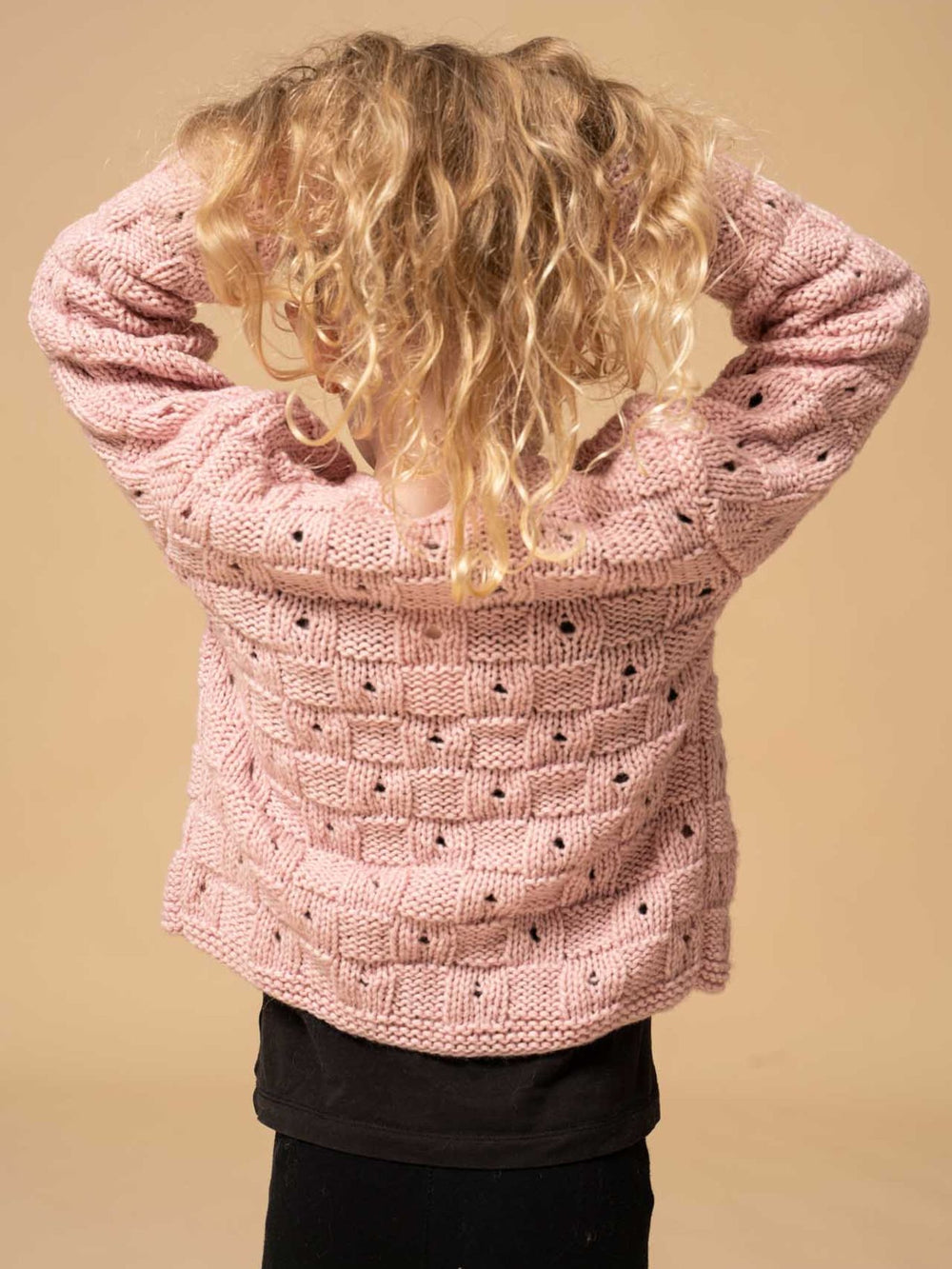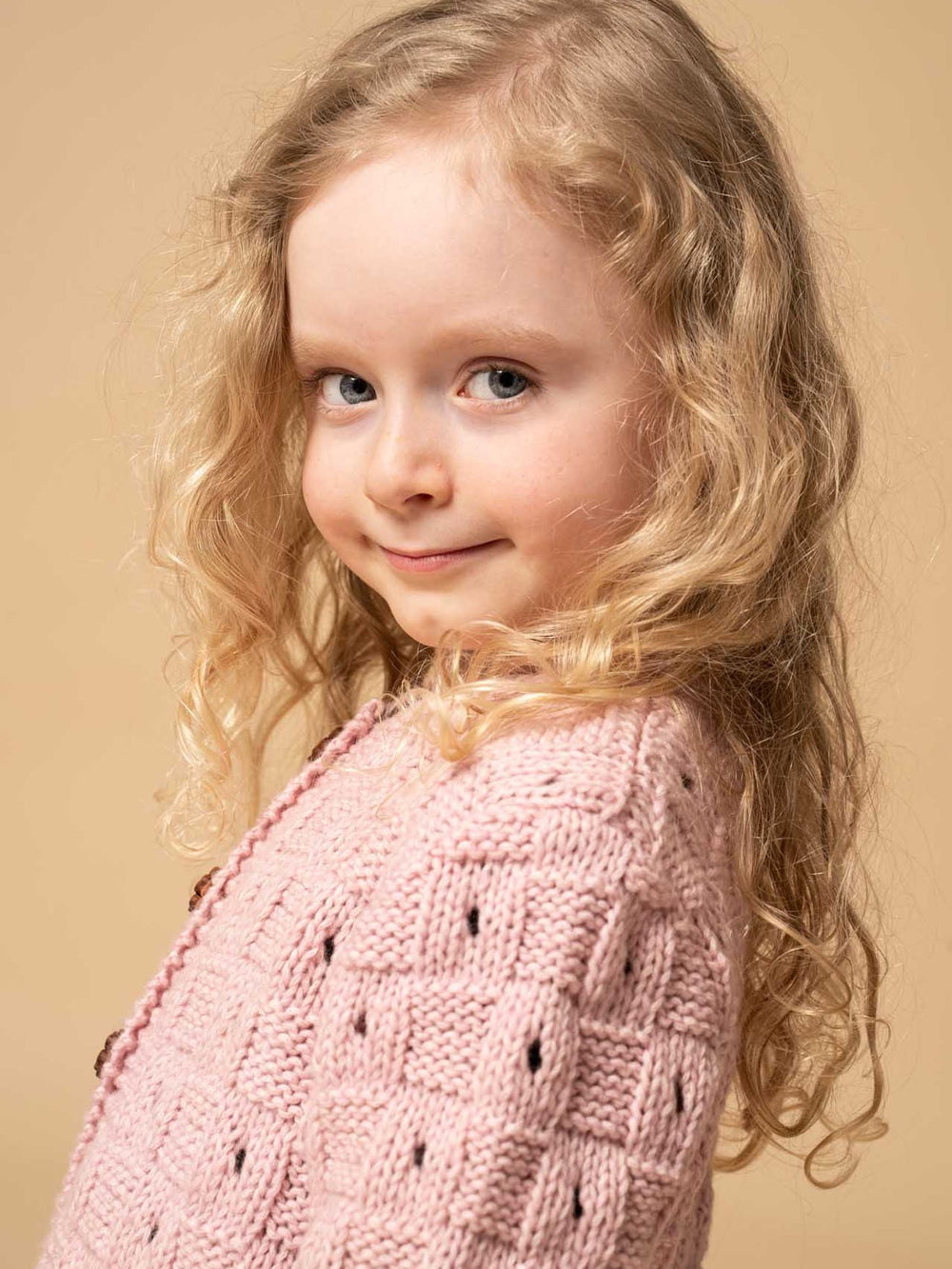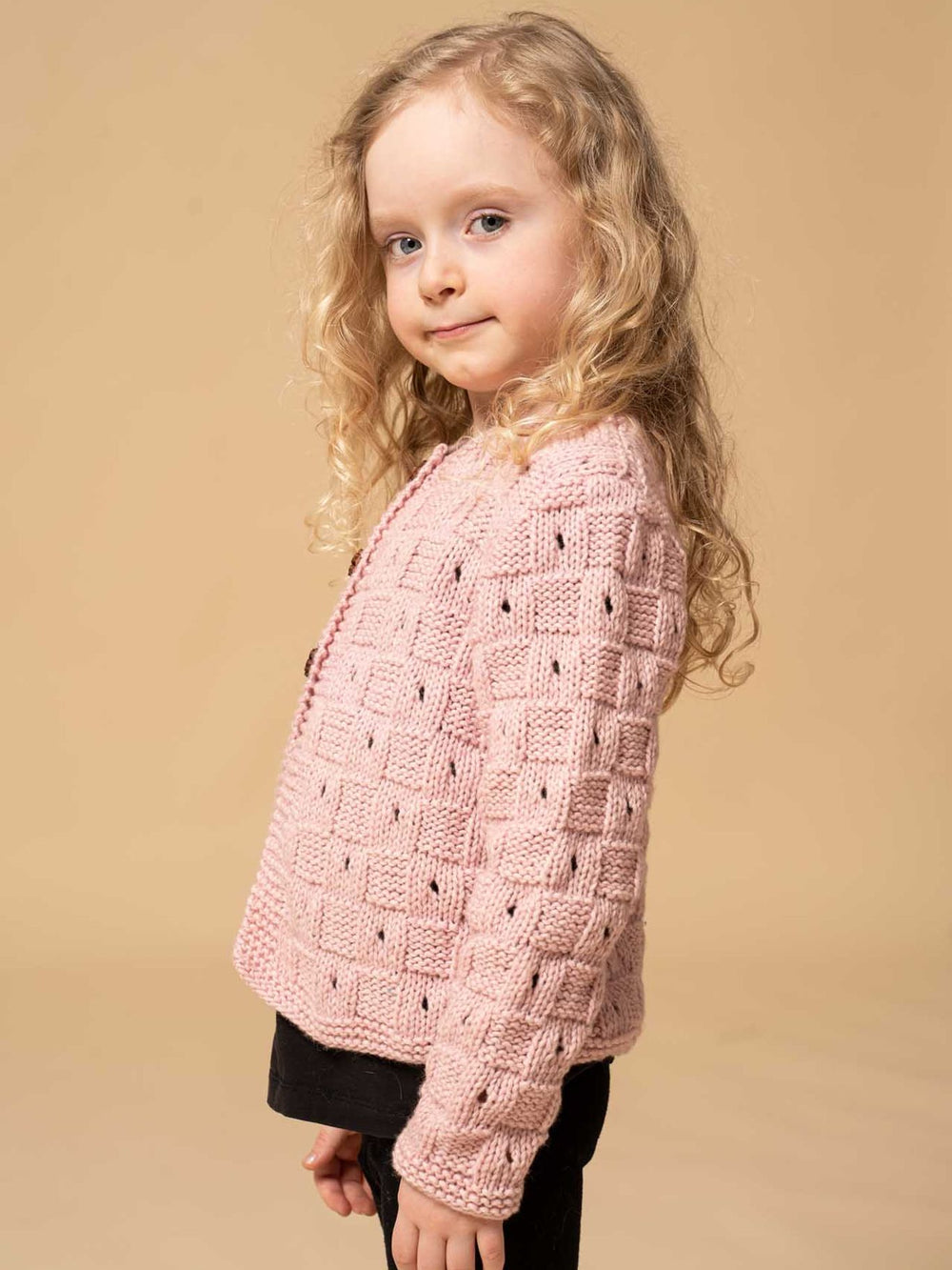 The Little Mermaid Cardigan is a perfect example of children's knitting where imagination has been given free rein, resulting in this fairy-tale cardigan. In this design, a traditional, checkered knitting pattern has been given a little twist, as every other square has a hole in the middle. The cardigan is finished with garter stitch edges, which are the finishing touch.