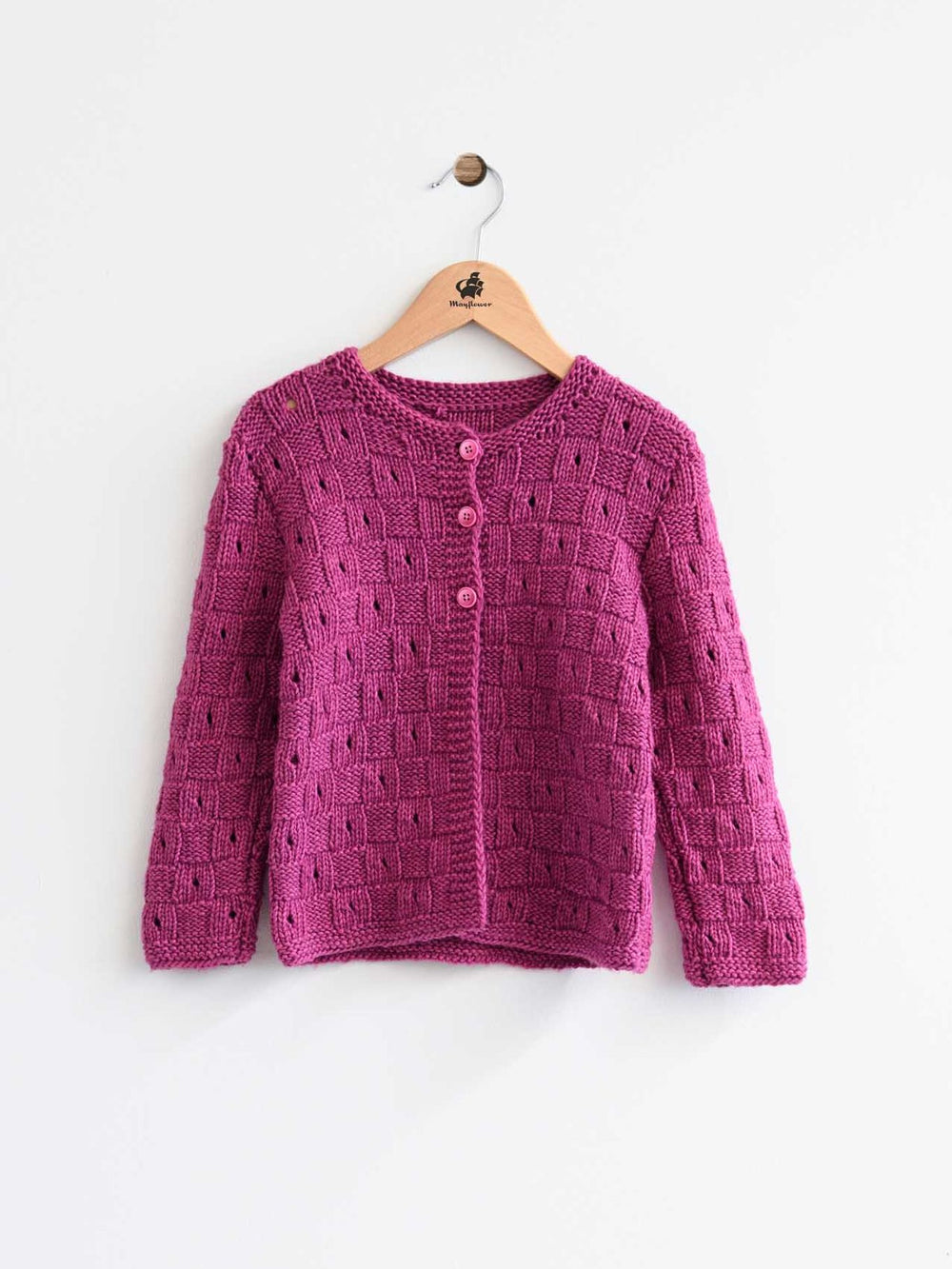 The cardigan is knitted in Mayflower Venezia, which consists of wool and cotton and comes in a variety of beautiful colors. A yarn blend that is perfect for children as it is warm without being too hot. At the same time, Venezia is also very soft and therefore good for delicate children's skin.