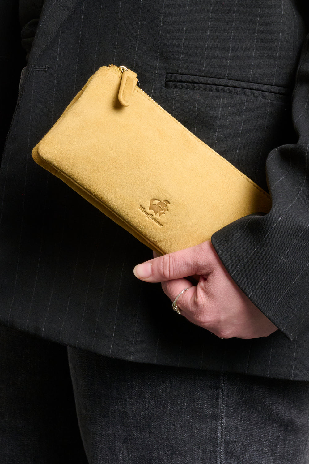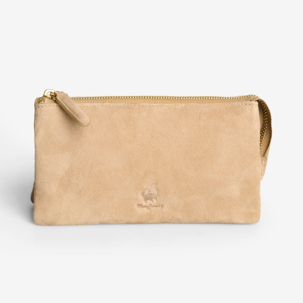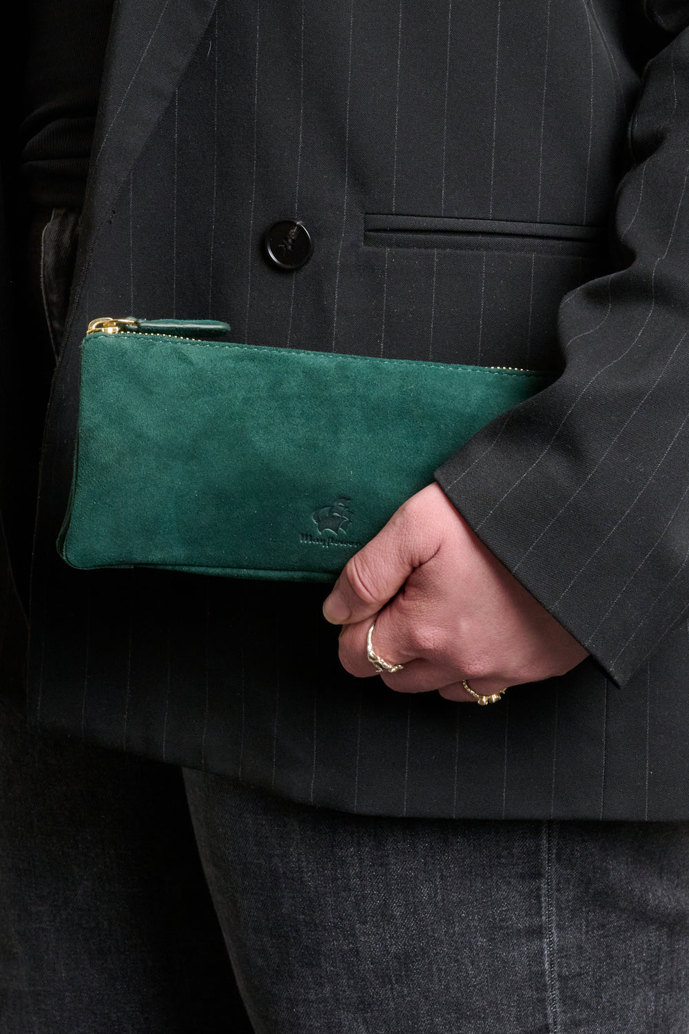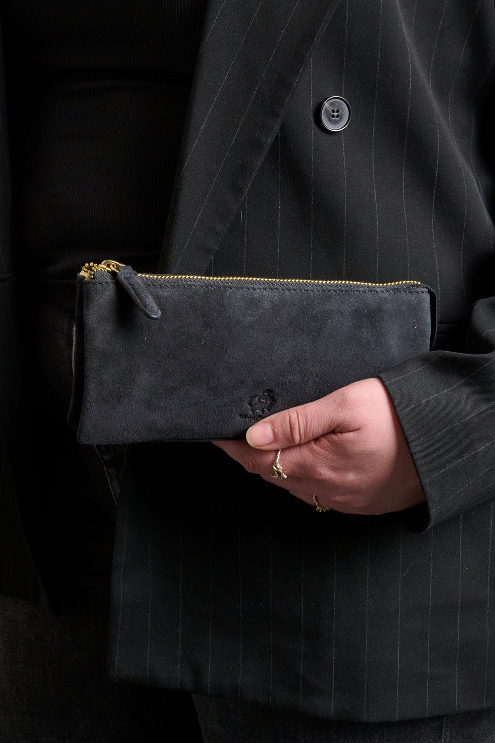 The Elisa case is crafted from soft, high-quality suede, known for its distinctive brushed texture and supple feel. The case feels beautifully soft and is perfectly sized for comfortable carrying.