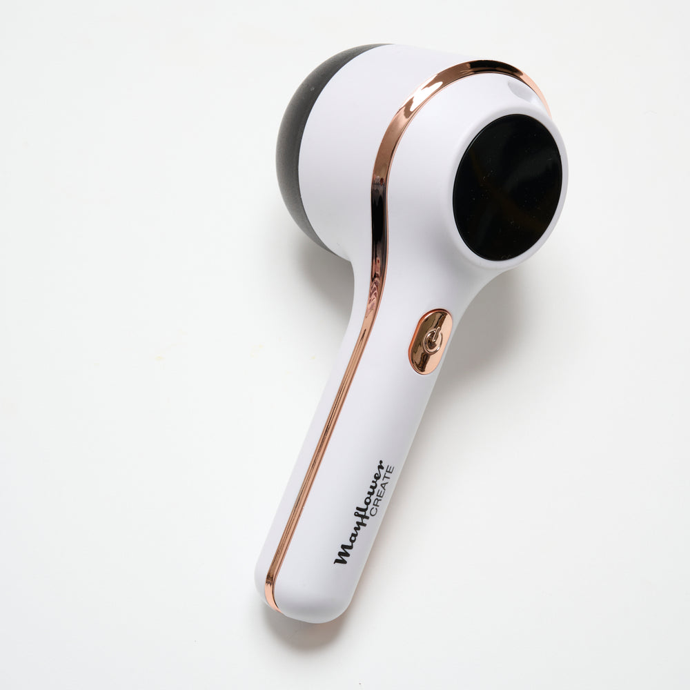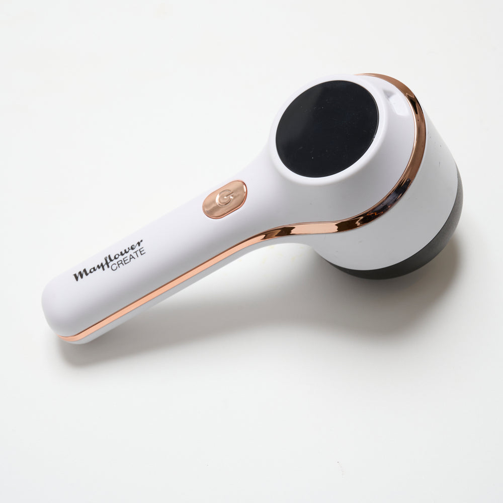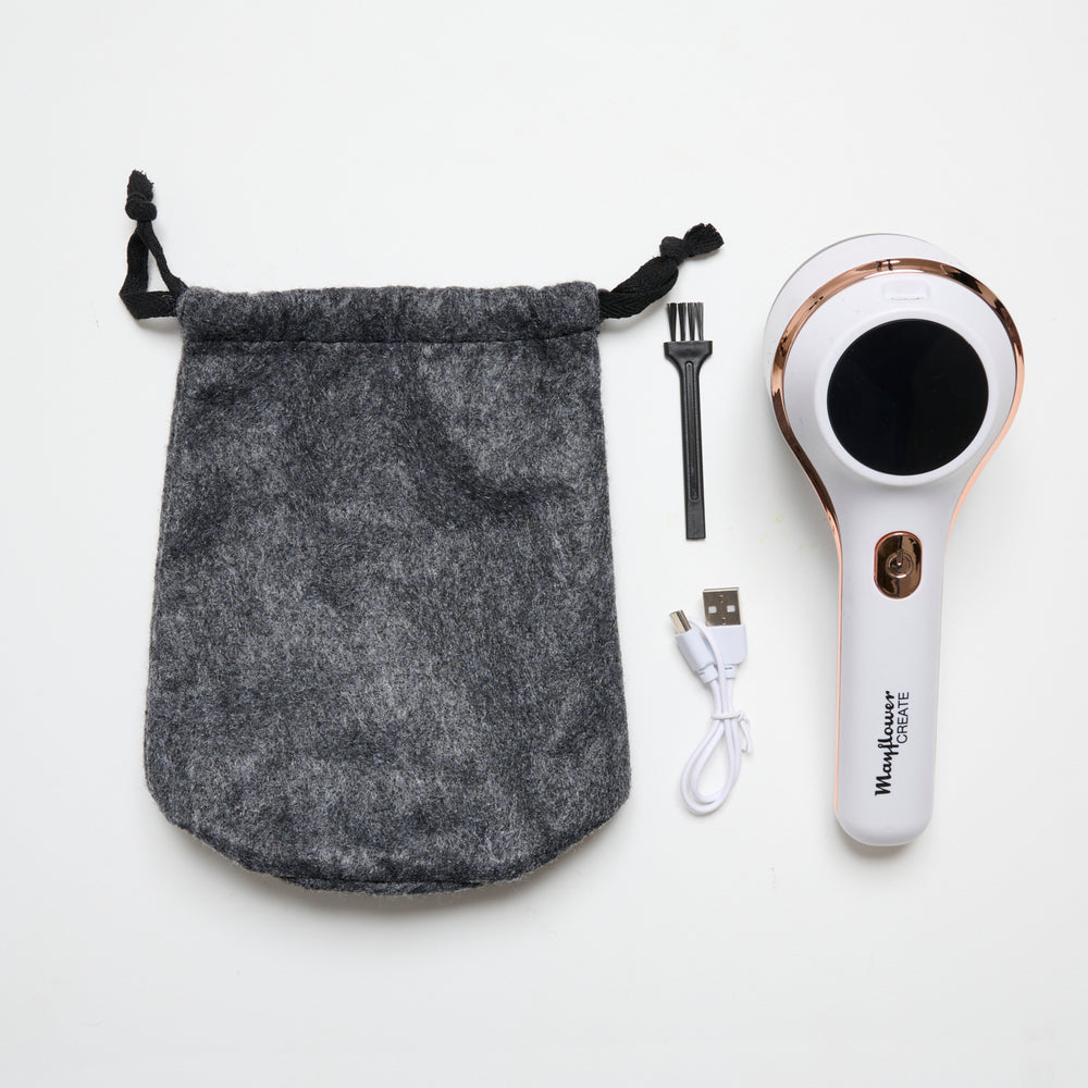 Smart lint remover/lint shaver with USB-C charger that quickly and gently removes lint from clothing. The lint remover is charged with the included USB-C cable.
