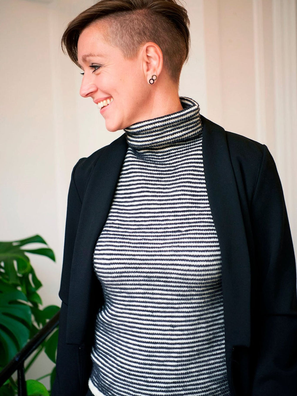 A really delicious and fine vest, which has a simple expression and at the same time the most exquisite details. The striped vest looks great on its own, just as it is also good to pair with, for example, a blazer, and the turtleneck gives the vest more character.