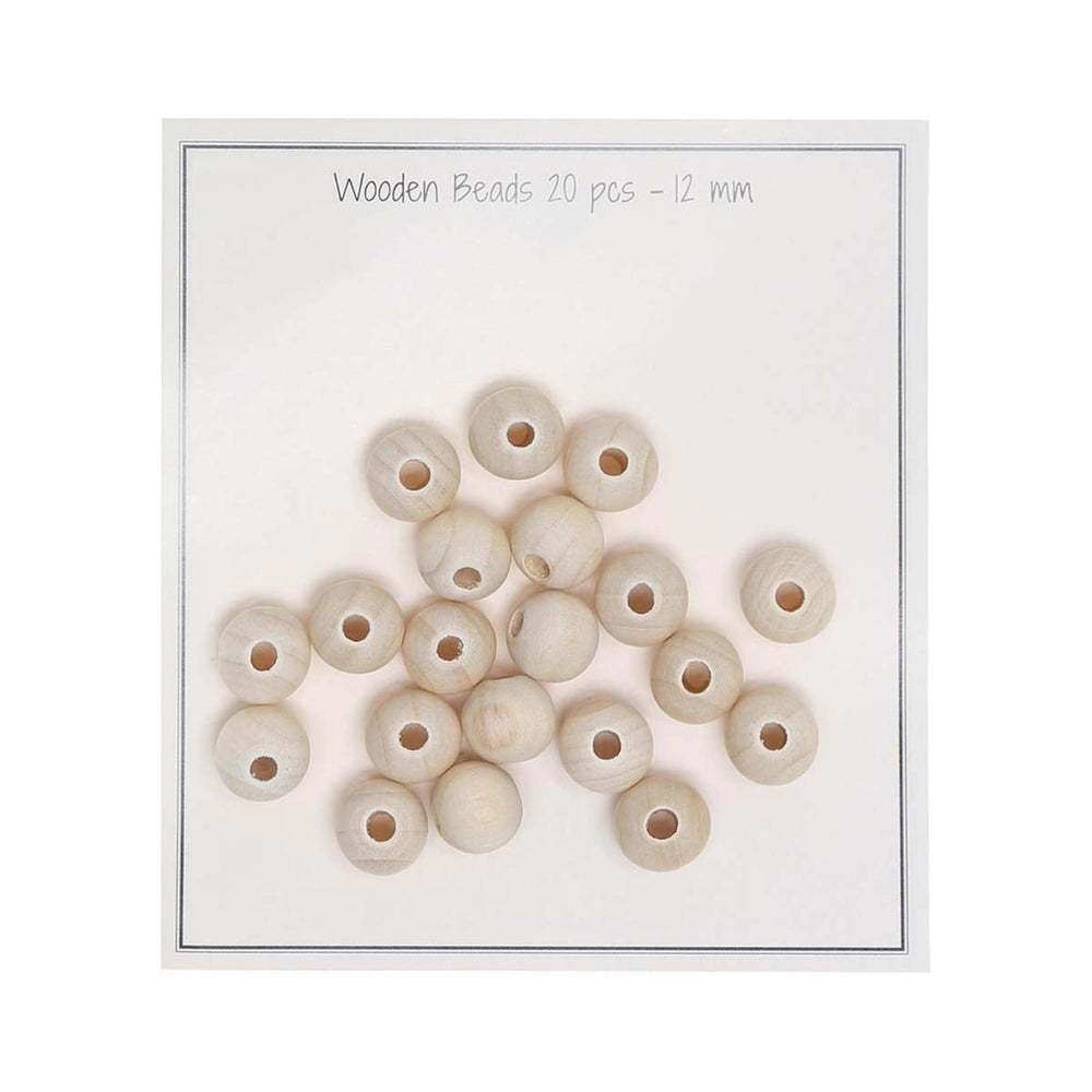 The wooden beads have a diameter of 12 mm and are drilled through so that a string can be threaded through. There are 15 wooden beads in the bag. NOTE: Small, dark spots may appear on the wooden beads as a natural part of the wood.