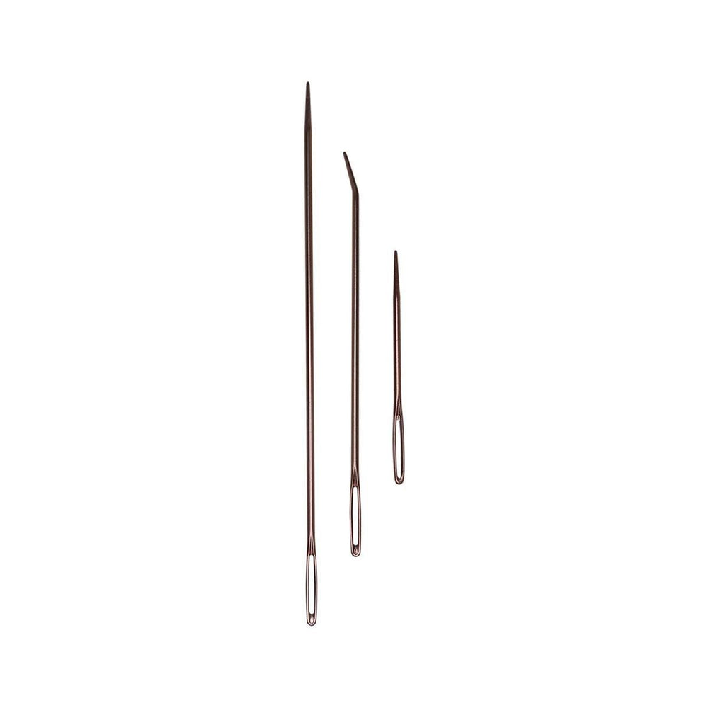 A practical set of 3 Needles for weaving in ends in your project. The needles come in different sizes: 7, 12, and 16 cm.