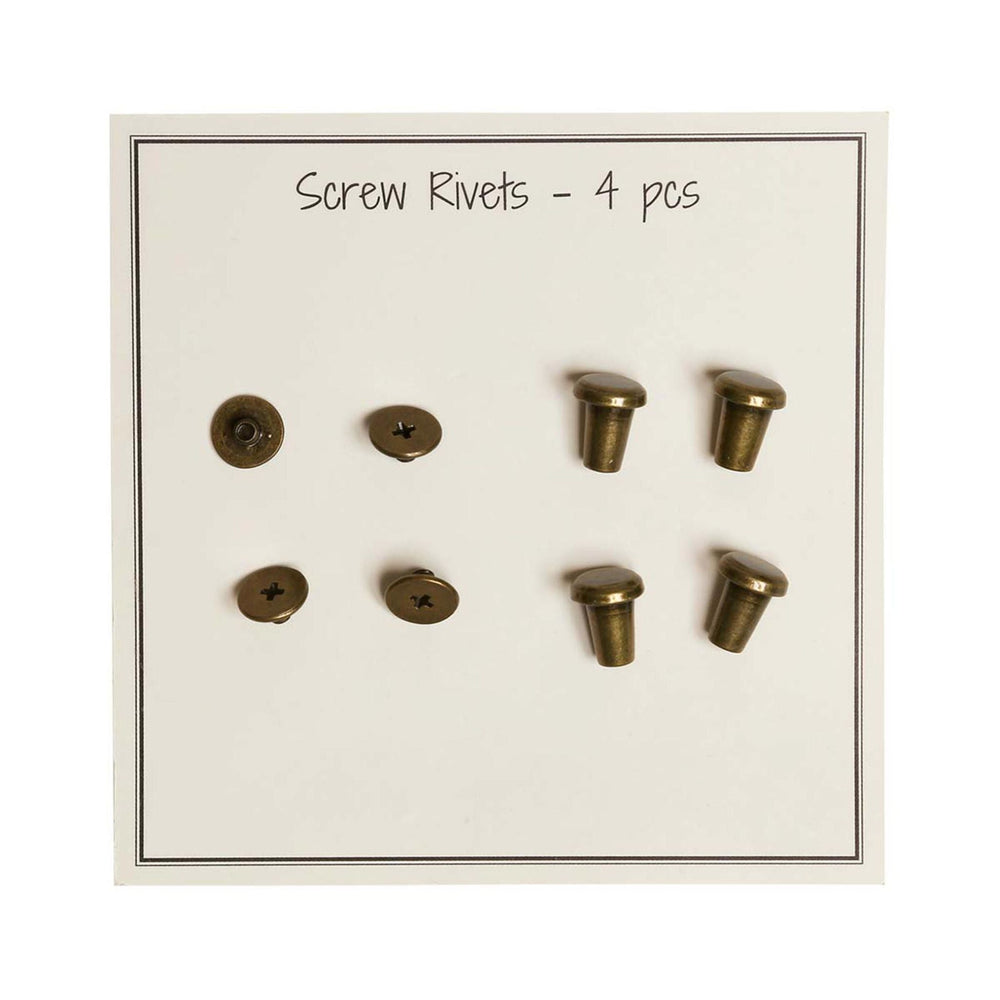 4 pieces of screw rivets, which can be used to attach, for example, a leather strap to a crocheted basket or a handle to a bag. The screw rivets are available in bronze with a diameter of 8.2 mm and a length of 10 mm.