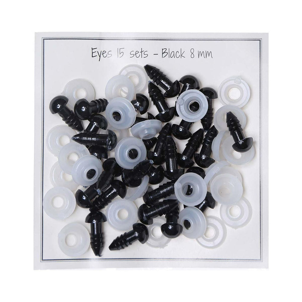 Go Handmade eyes 8mm 15 pairs Black - Black is backordered and will be shipped as soon as it is back in stock.