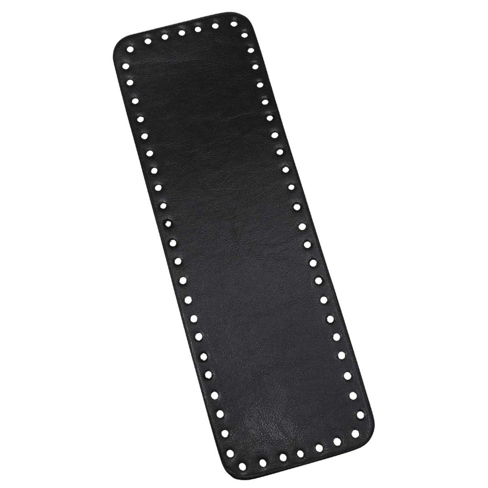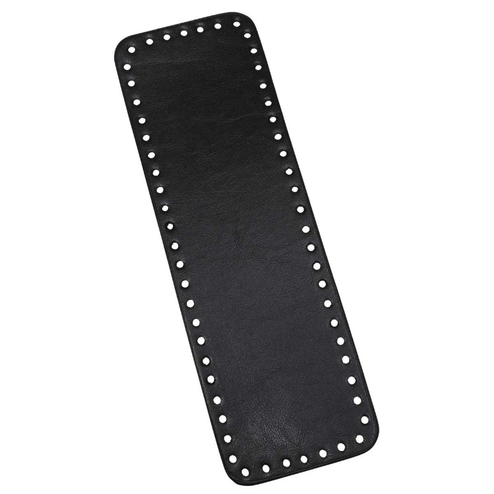 The bag base or basket base is made of 100% PU leather with a thickness of 3.5-4 mm and a hole size of 5 mm. The base has rounded corners and is hand washable. The leather base is black and measures 31 x 10 cm.
