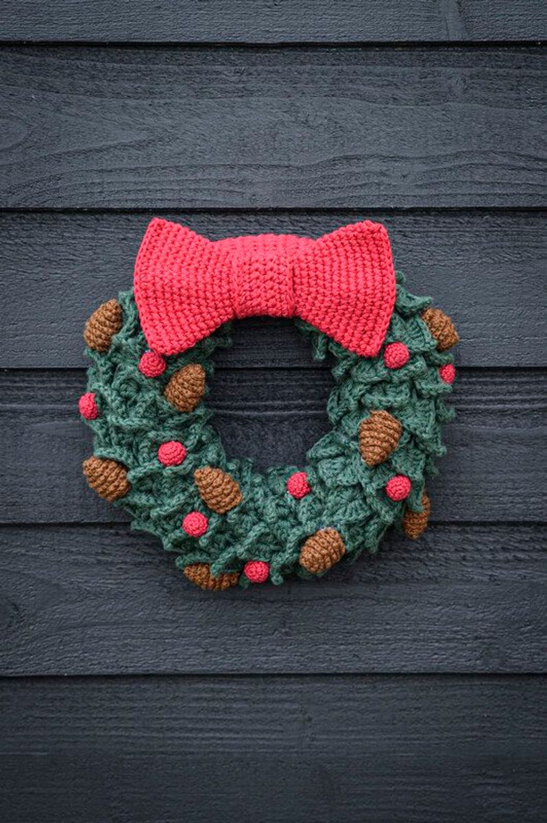 There are infinitely many possibilities when it comes to crocheted Christmas decorations, and here is our suggestion for a crocheted Christmas wreath that can adorn your wall or door. The wreath has a realistic appearance, so you almost believe it is real when you see it from a distance.