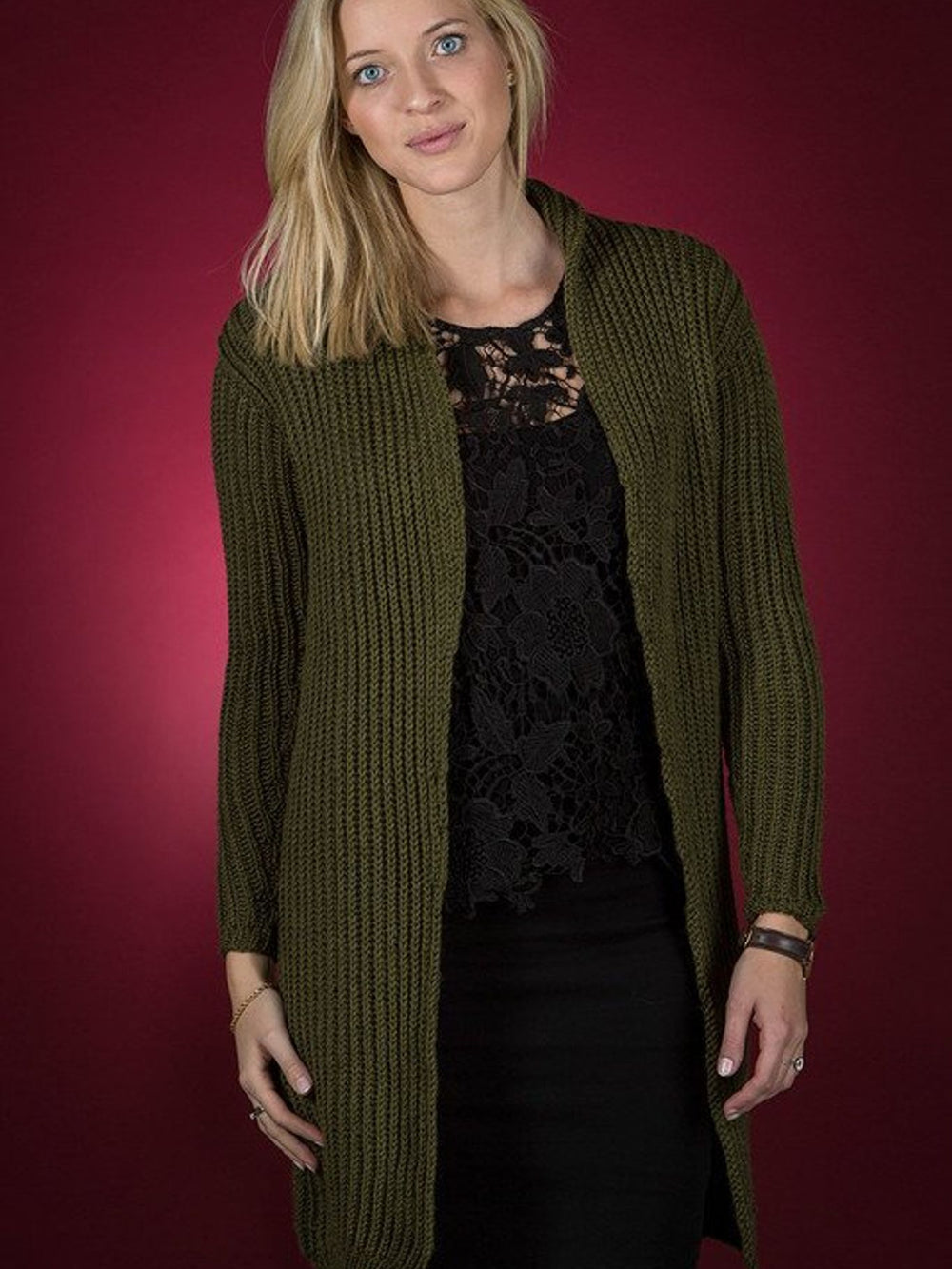 A long cardigan, which is knitted in the warm Mayflower Easy Care Classic, consisting of 100% pure new wool.