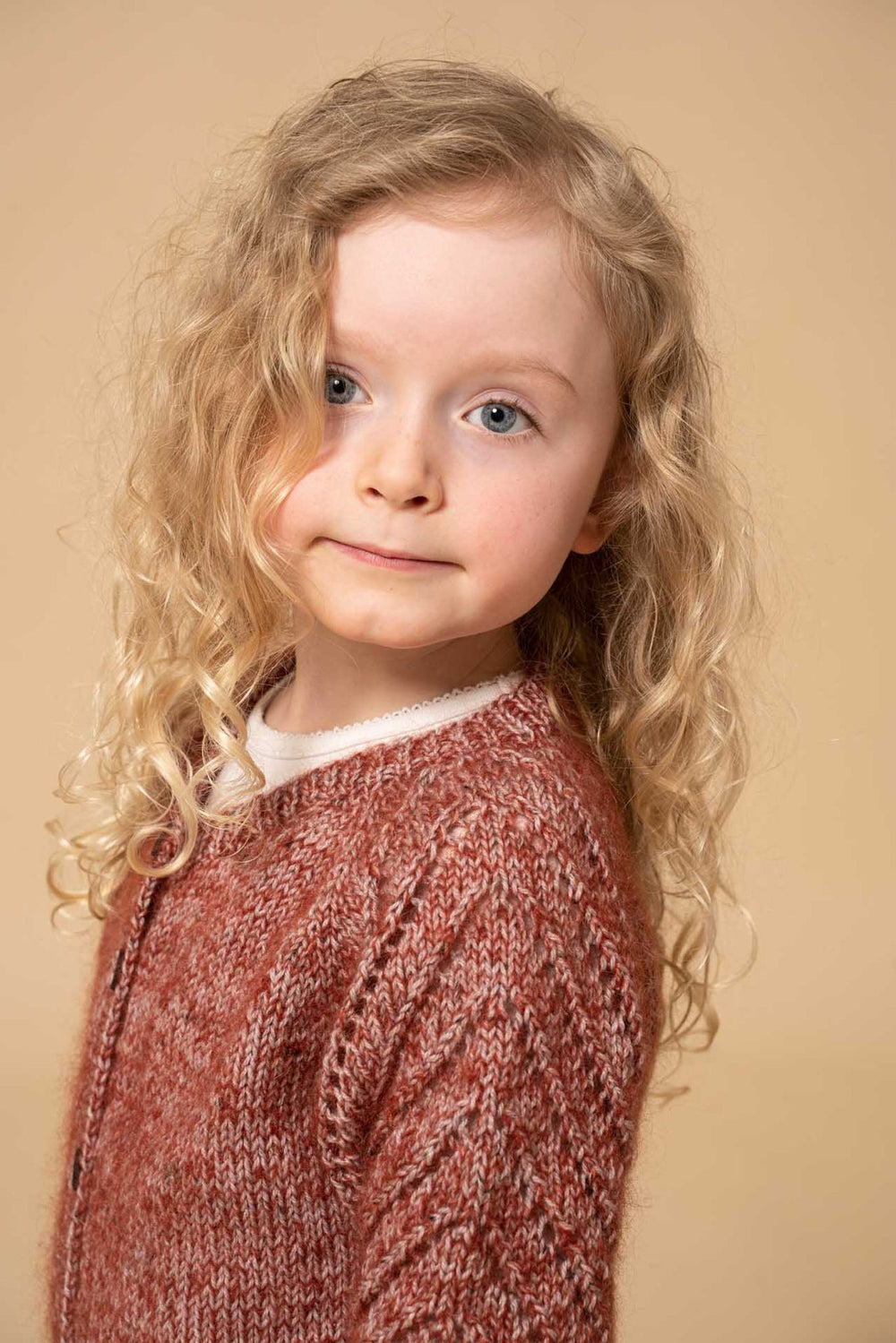 Liva Cardigan Junior is a Nordic design that draws its inspiration from the Danish nature. This is seen, among other things, on the sleeves, which have an openwork pattern with a beautiful leaf structure. The source of inspiration is further highlighted by the atmospheric natural colors in lightly mottled shades.