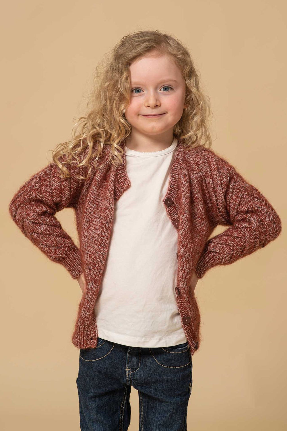 The simple Liva Cardigan Junior will appeal to anyone who appreciates timeless design, and is a perfect example of the many possibilities with knitting, and that an incredibly beautiful effect can be created with just a simple knitting effect. As an added bonus, you can also knit a matching Liva Cardigan in adult size.
