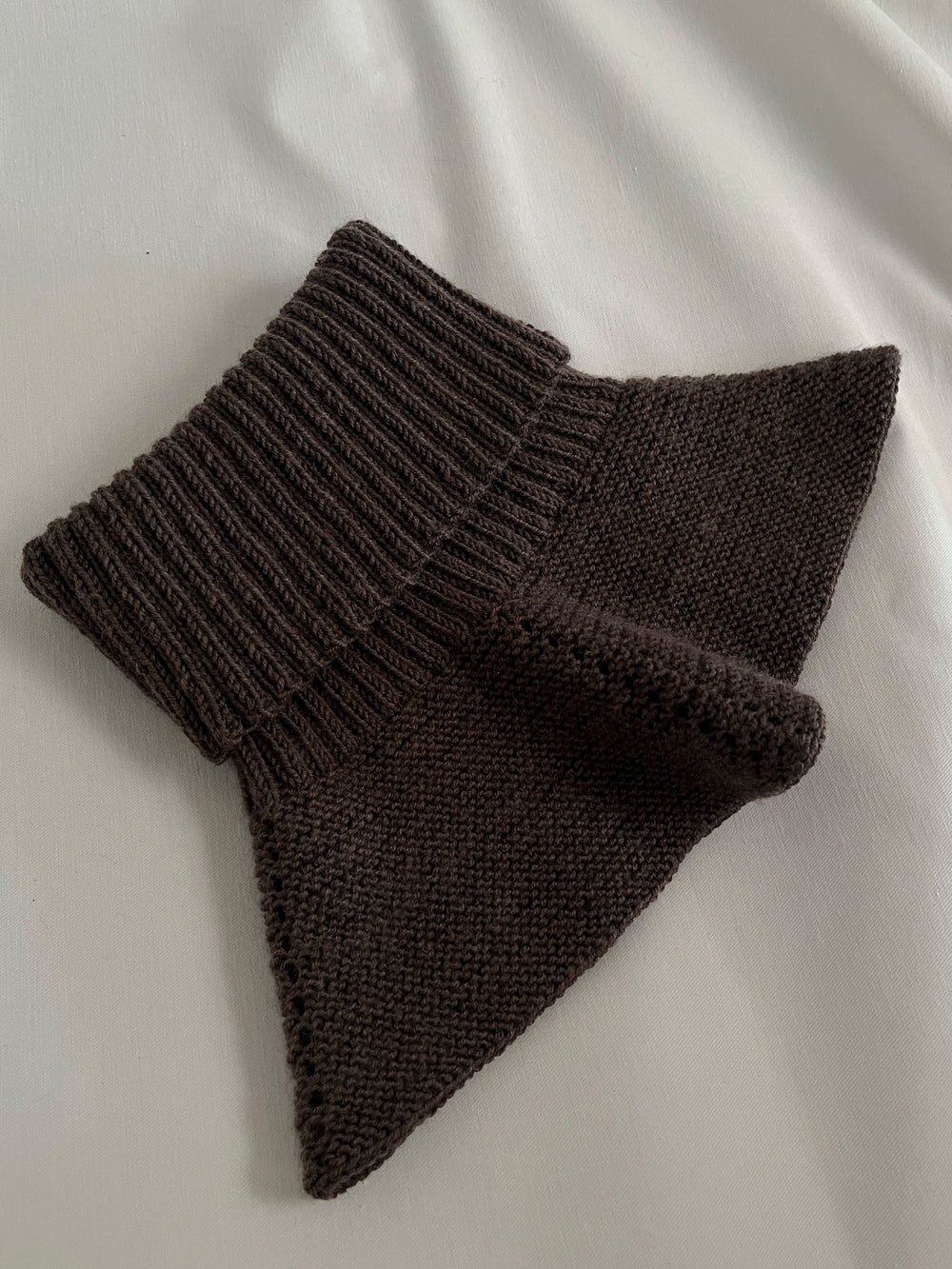 The neck warmer is easy to make, as it is made with garter stitch and a folded rib collar.