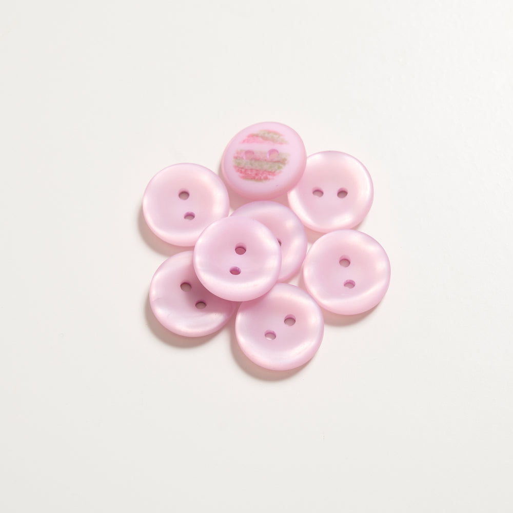 Buttons with two holes and colored, shaded design. They are available in 4 different colors and measure 18mm.