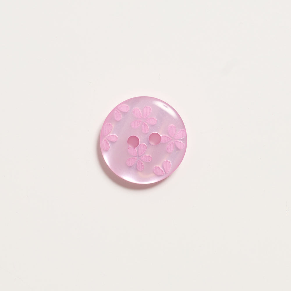 2-hole buttons with flower motif in 5 different colors with a shiny look. Size: 15mm. Quantity: 8 pcs.