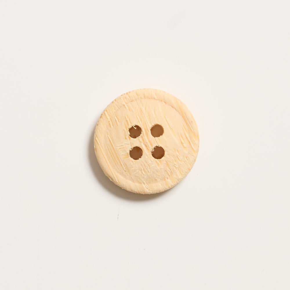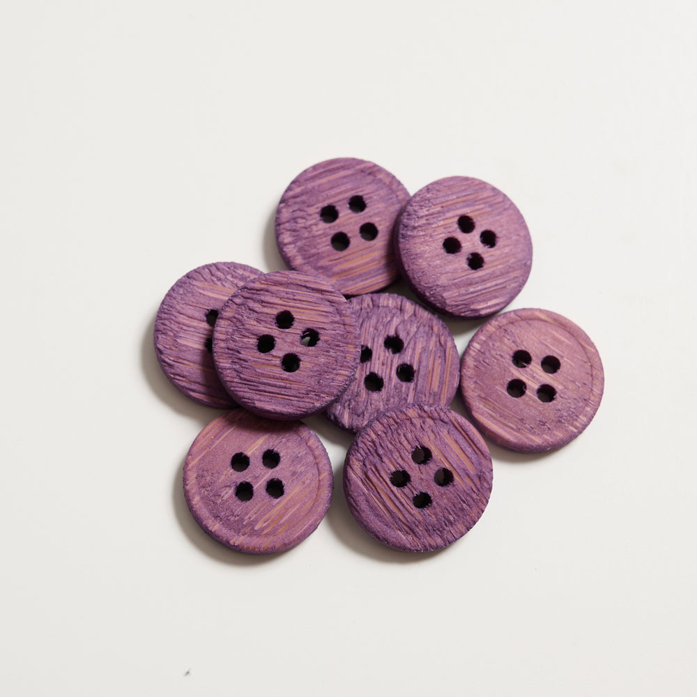 Mayflower Create Buttons with 4 holes and a smooth surface. The buttons are made of bamboo and come in both a natural look and various muted colors. They measure 15mm and there are 8 pieces in a package.