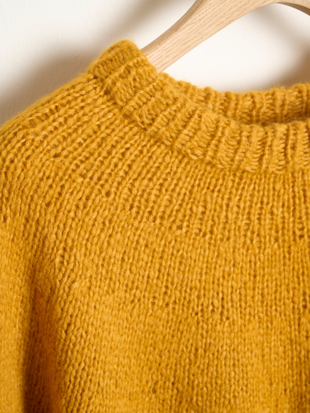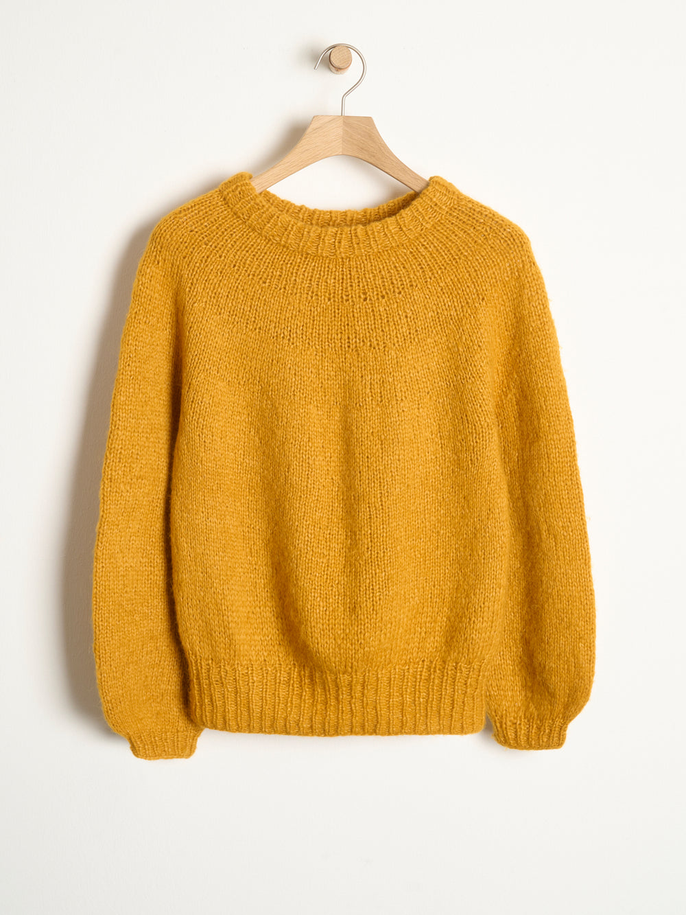 The Novice Sweater – Chunky Edition is made with Mayflower Anyday Breezy, a fluffy, woolly yarn with lovely volume. This makes the sweater both soft and cozy to wear.
