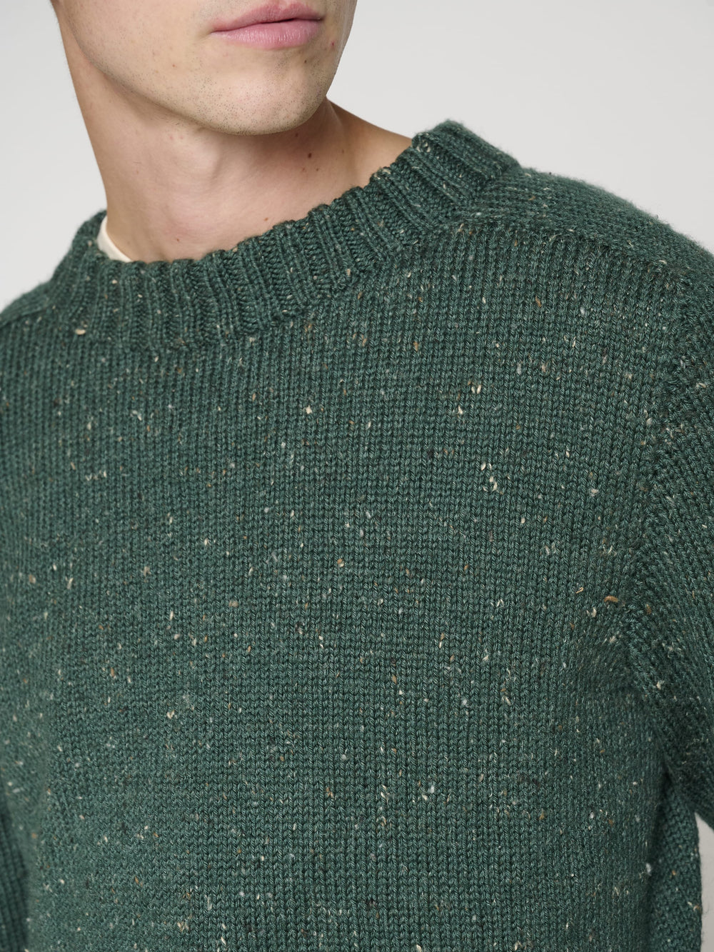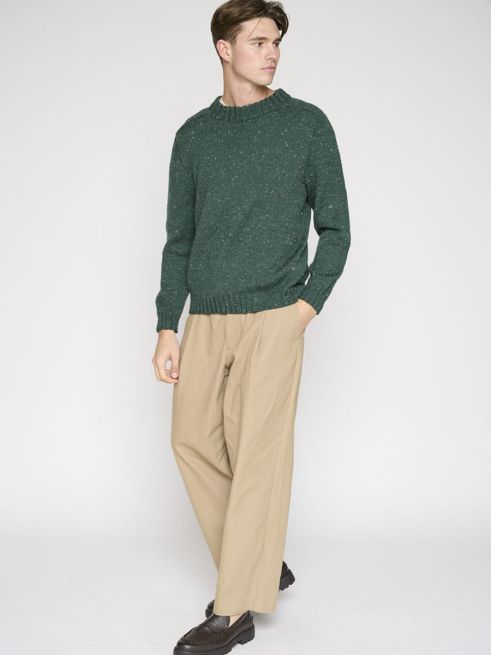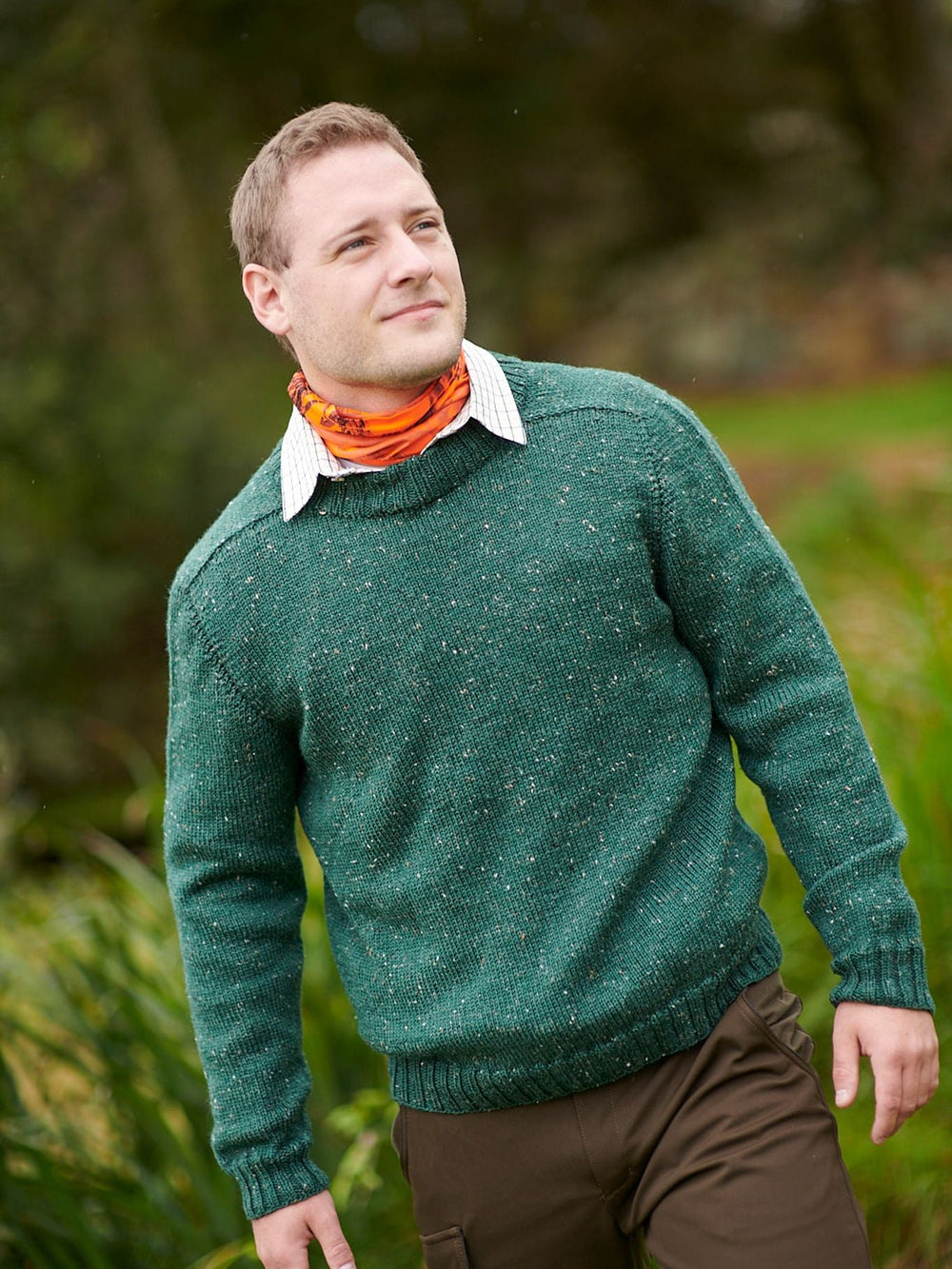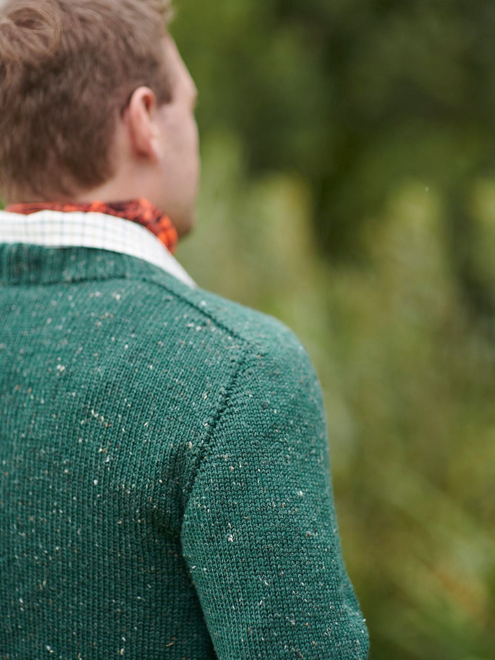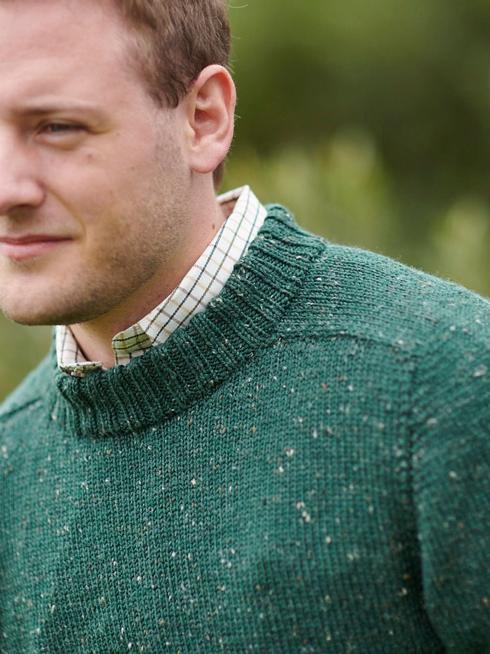 The Peter sweater is a truly lovely, woolen sweater, knitted in a soft yarn quality with tweed flecks. The sweater is knitted from the top down with saddle shoulders and wide ribbed edges. The sweater is knitted in the tweed yarn Mayflower Easy Care Classic Tweed. The woolen yarn is a good choice for this hunting sweater, as wool is both a warm and breathable fiber. Therefore, the sweater will provide good warmth while also allowing the body to breathe, which is an advantage for hunters who may be out in all kinds of weather. The many tweed flecks add more depth and color play to the sweater.