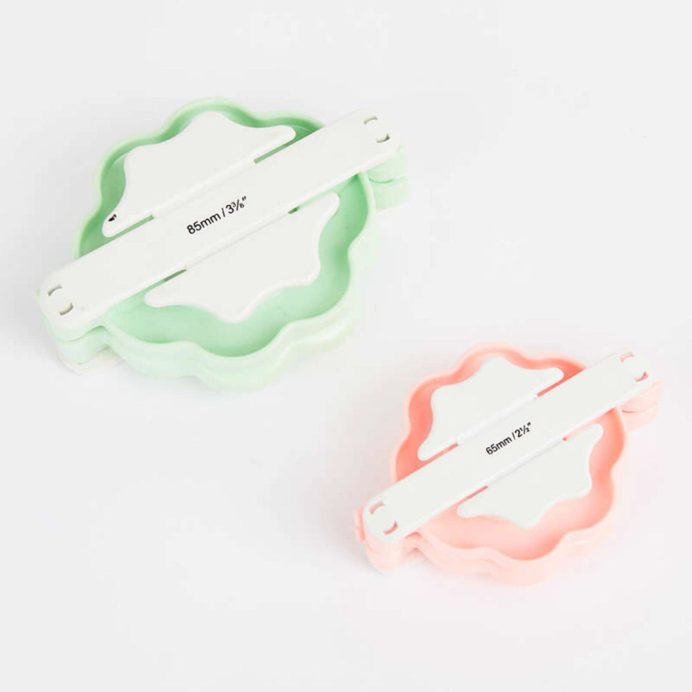With these, you can make fine pom-poms that can be used for decoration on, for example, hats, scarves, bags, etc., and they also look nice on their own for hanging. You can make pom-poms in sizes 6.5 cm and 8.5 cm.