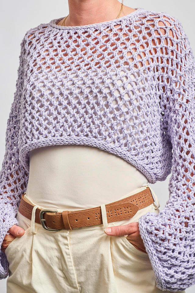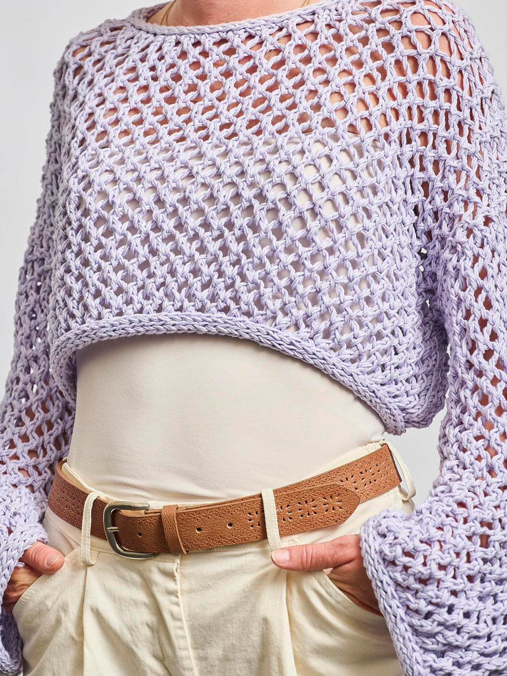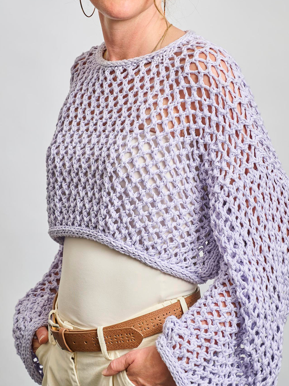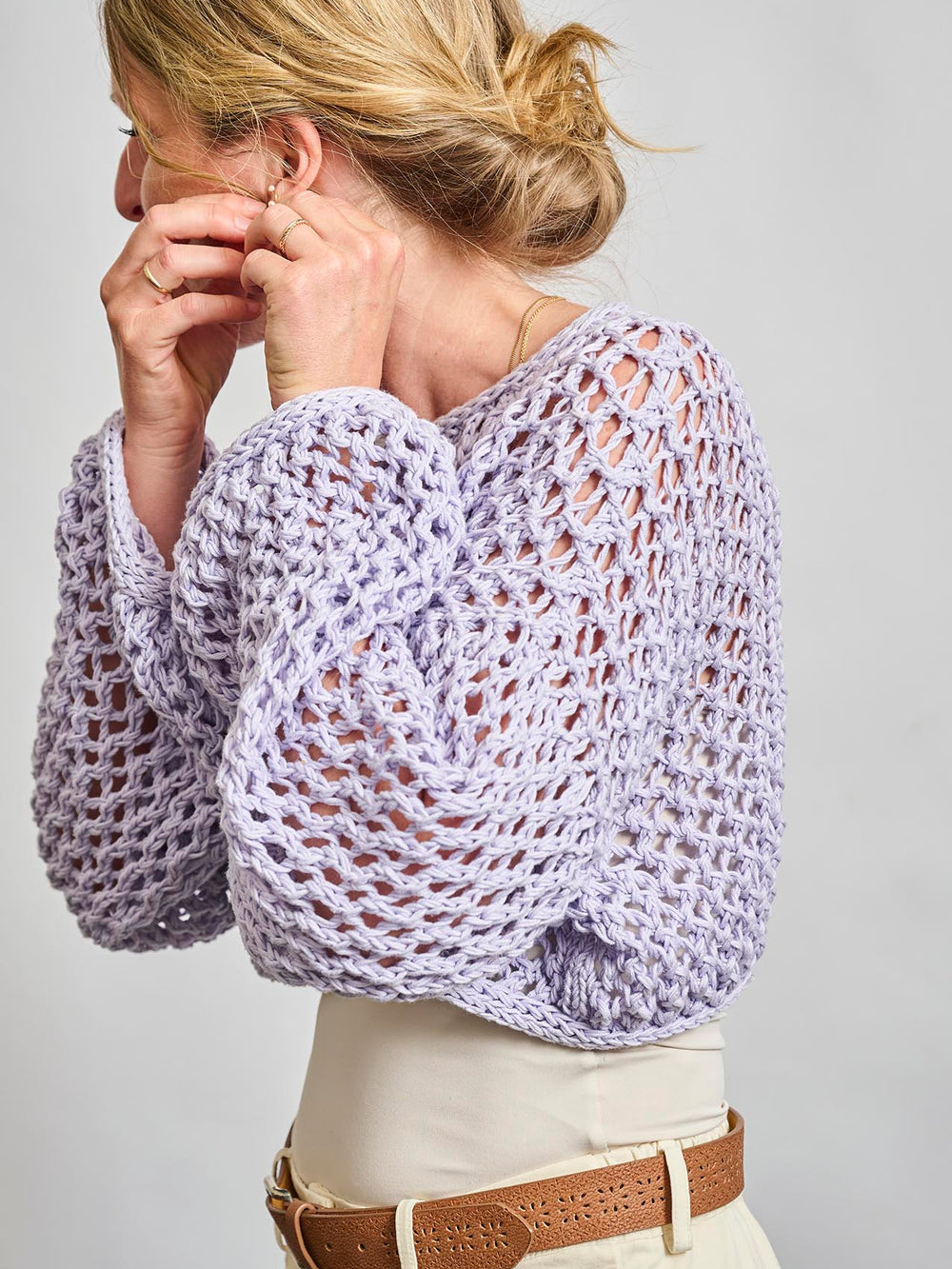 Knitted blouse, in an airy lace pattern. The blouse has a loose fit in the yoke and over the chest and good width in the sleeves. The design is therefore very light and airy. The blouse is knitted from top to bottom.