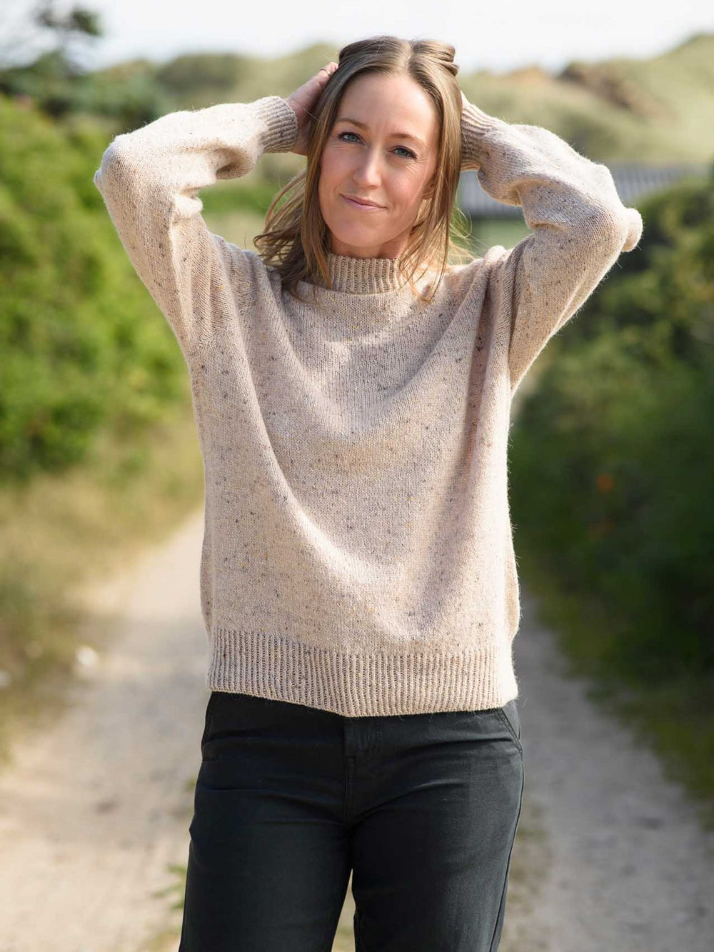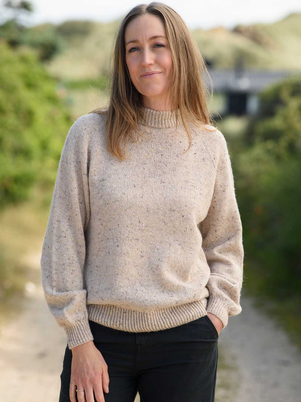 Skørping Sweater is knitted in the delicious, woolen Mayflower Birmingham. A fantastic yarn quality consisting of, among other things, wool and alpaca with beautiful tweed flecks that are color-coordinated with the yarn's shades. Although the yarn is spun thin and fine, the fiber composition still provides a warm, soft, and durable yarn that is also temperature regulating. With the Skørping Sweater, you get a classic sweater that can be used year-round, is wonderfully comfortable to wear, and looks fantastic with the lovely tweed colors.