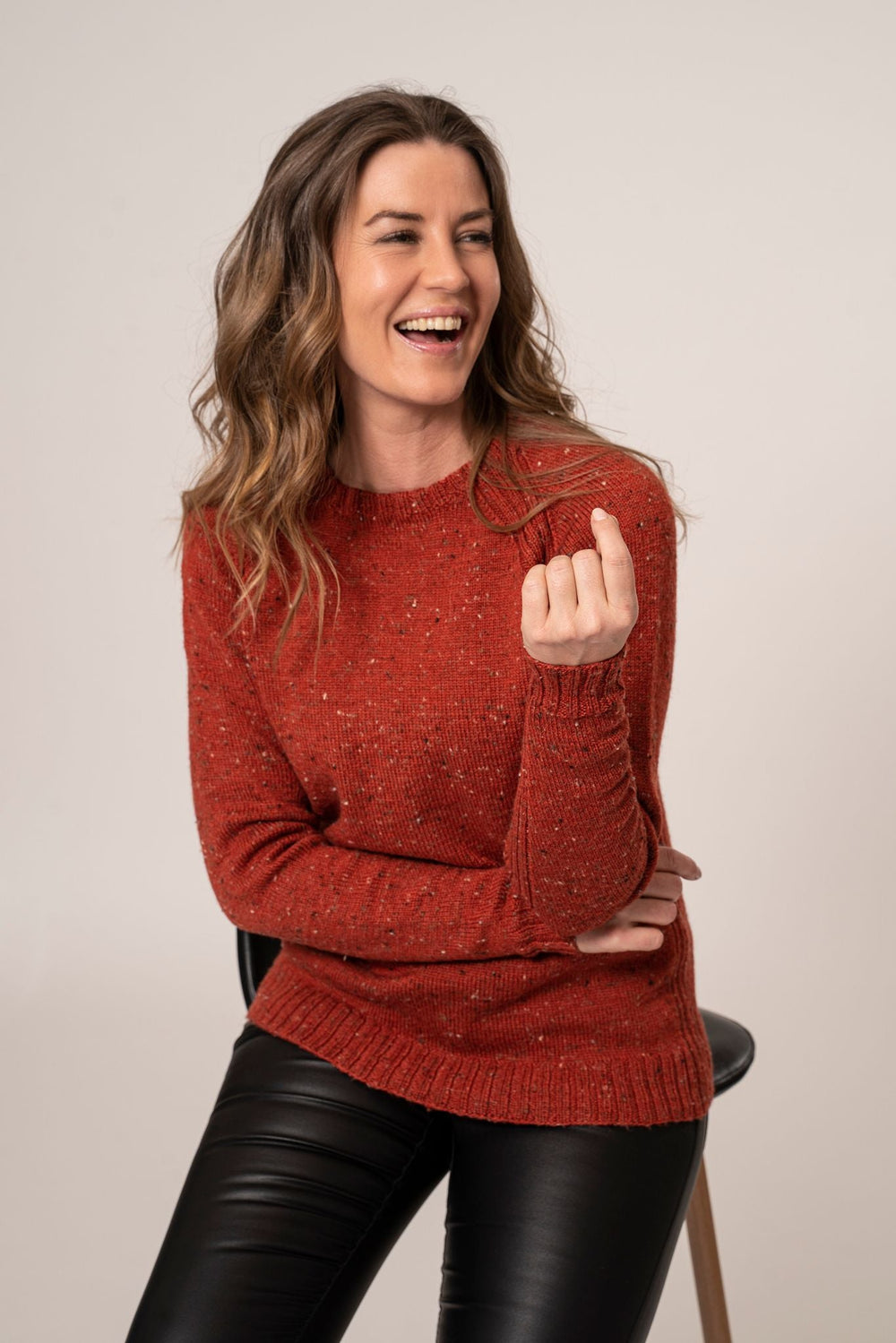We have made two different versions of the sweater. The pink sweater is knitted in Mayflower Easy Care, while the red and light gray are knitted in Mayflower Easy Care Tweed. The two yarn qualities have the same yardage and Knitting gauge, so you just need to decide whether you want to knit a sweater with or without tweed. No matter which yarn you choose, you will get a lovely and comfortable sweater. Both yarns are soft and have a nice natural breathability, and both yarns can be machine washed.