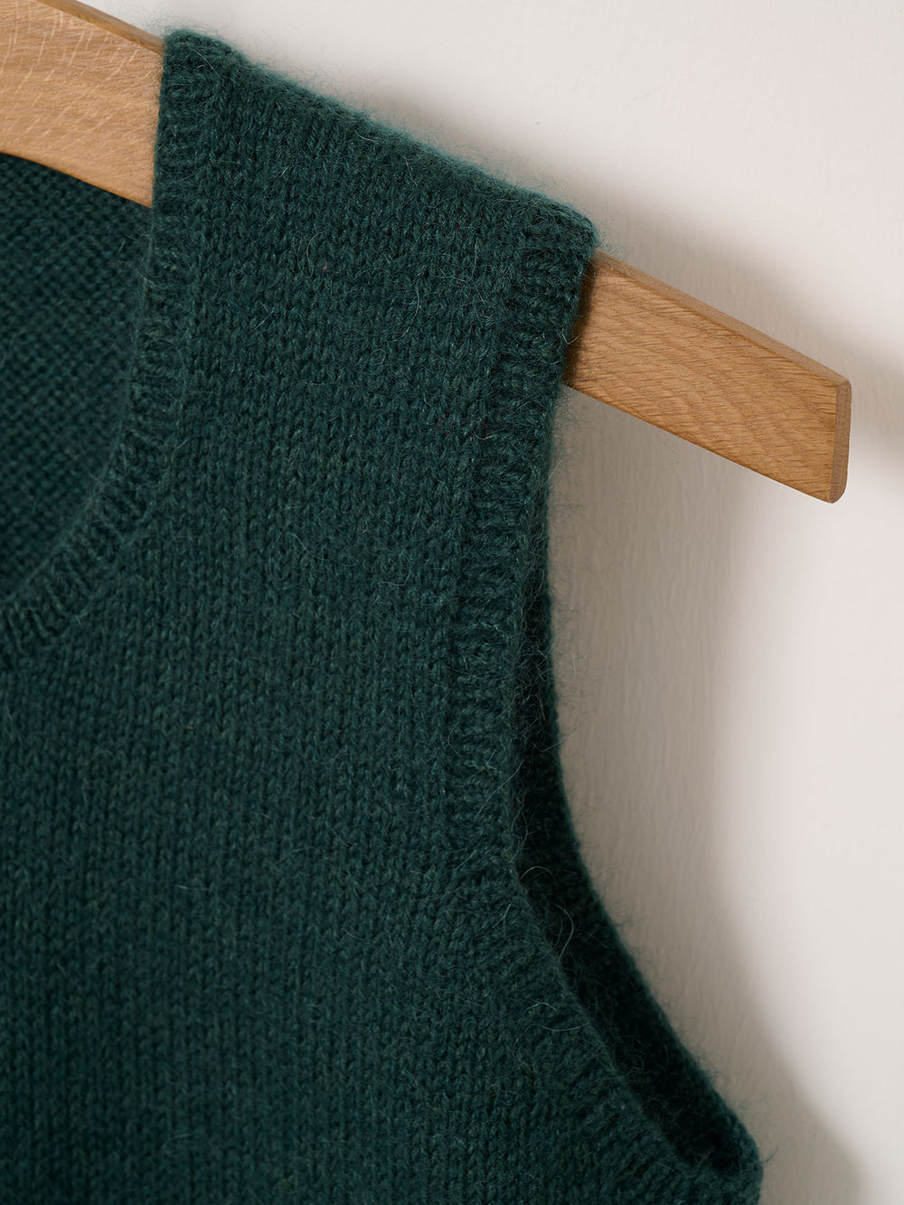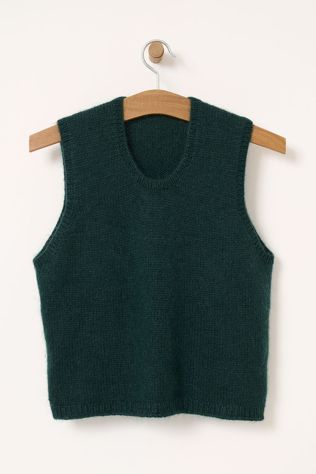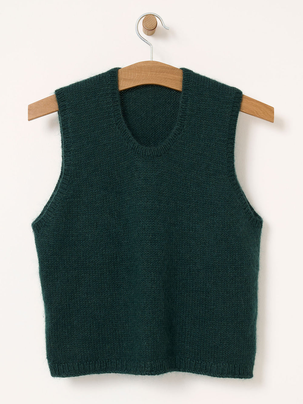 Thanks to its unique structure—knitted with one strand of Mayflower Easy Care together with one strand of Mayflower Super Kid Silk—this slipover combines soft wool and airy mohair for a cosy, luxurious feel. It’s perfect for layering over everything from a shirt or blouse to your favourite dress.