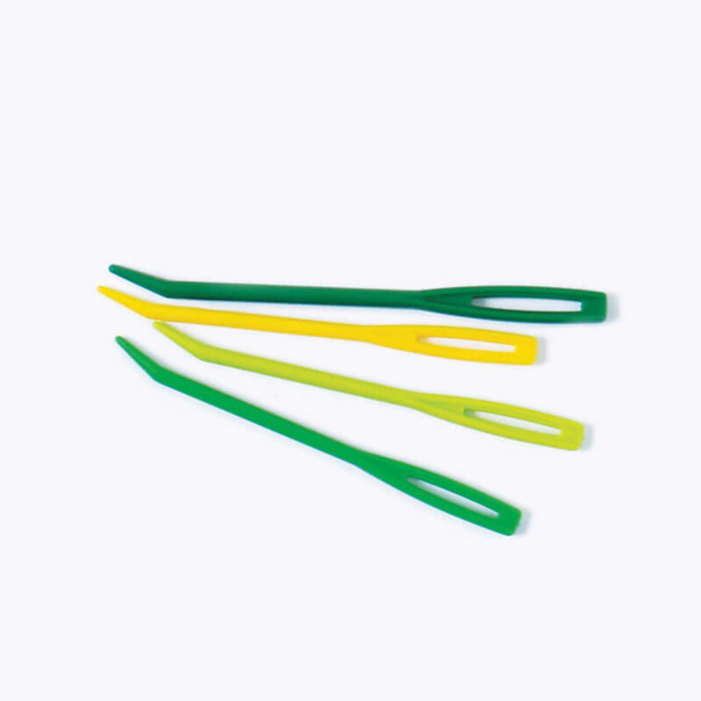 Plastic darning needles from KnitPro, which are great for securing yarn ends in your knitted or crocheted work. The needles can be used for all types of yarn. The needles have a rounded end and therefore are not sharp, and the tip is slightly bent, making it easier to work with. The needle has a large eye, making it easy to thread.