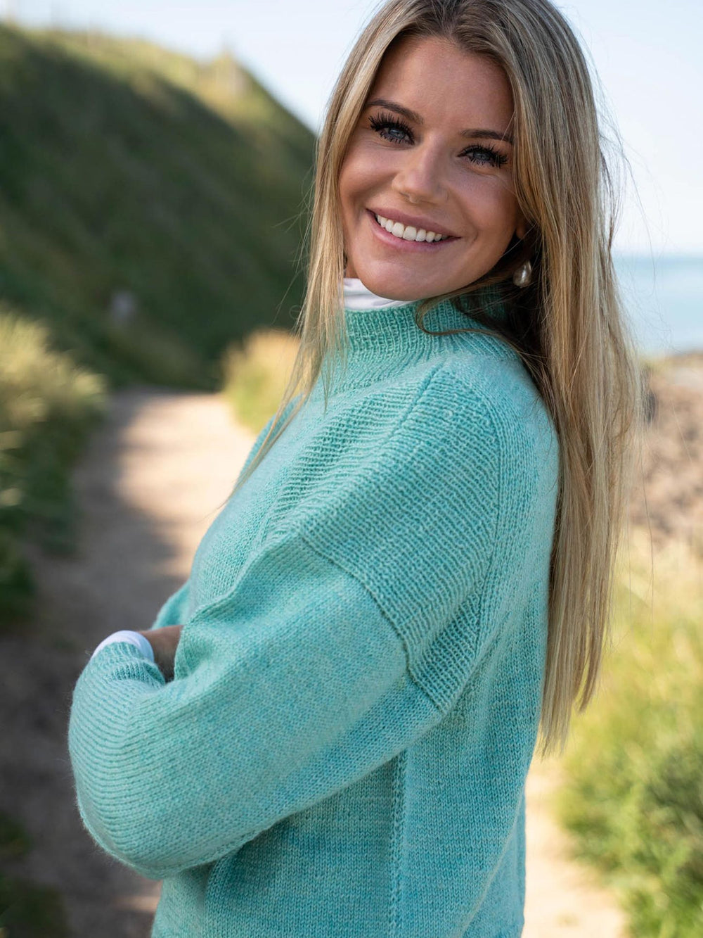 The sweater is knitted in Mayflower Easy Care, which consists of 100% pure wool. The wool in Easy Care is of high quality, making the yarn quality pleasantly soft and comfortable against the skin.