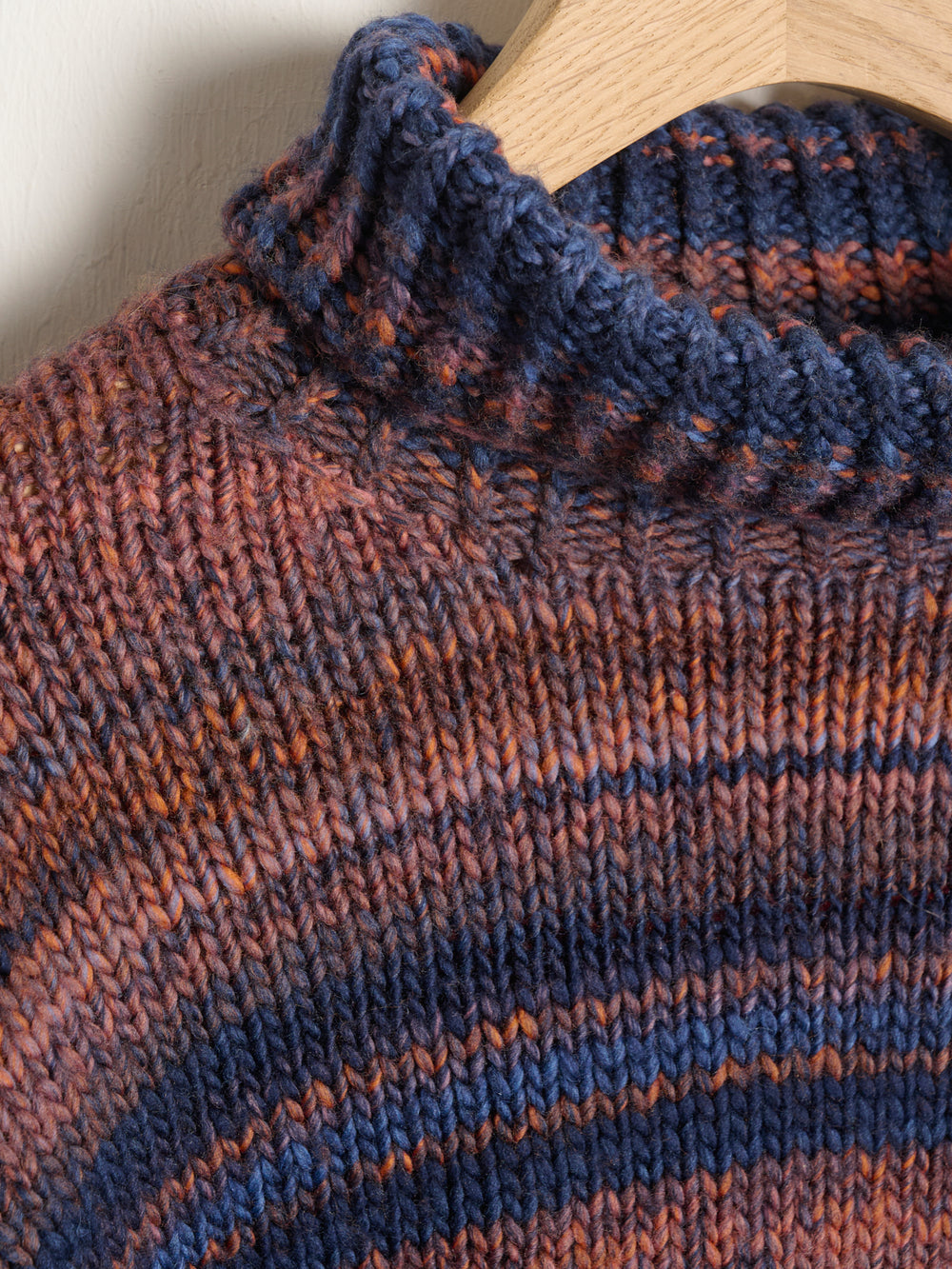 Knitted in the warm and cozy Mayflower Premium Maxima, the Wednesday Sweater turns out wonderfully soft, and the color-changing yarn creates a beautiful variegated effect.
